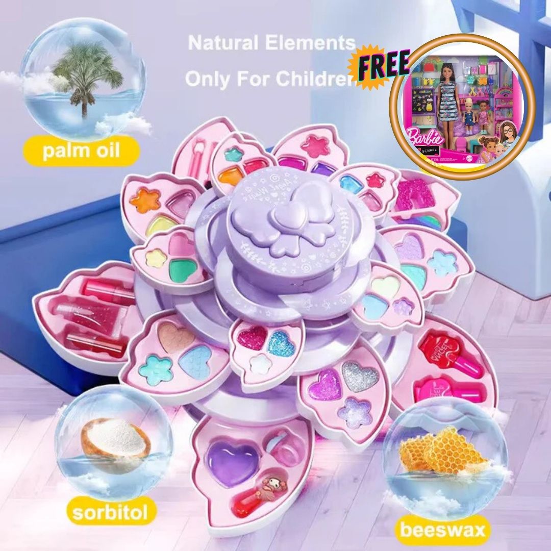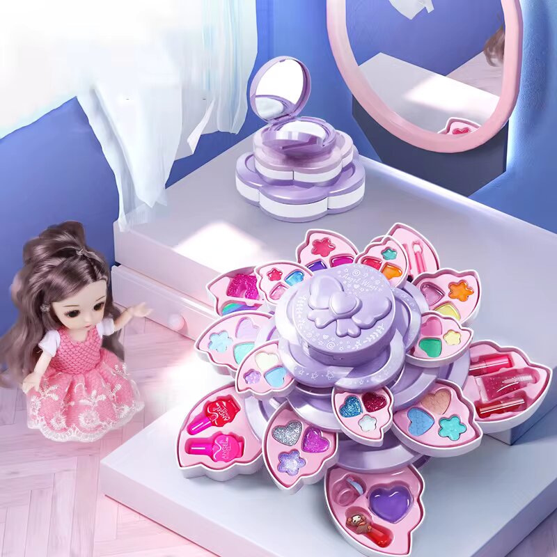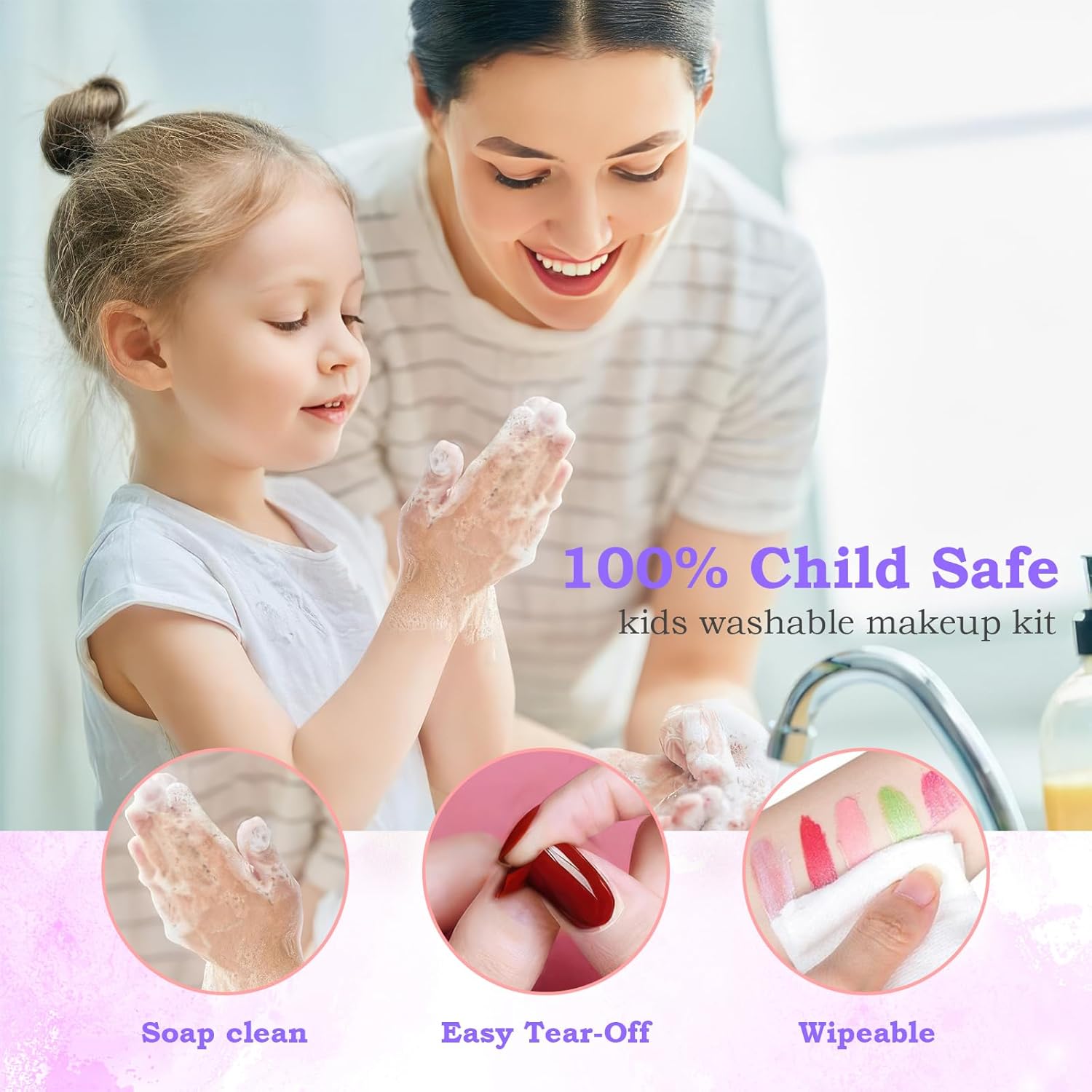 Inside this enchanting set, your child will find a variety of colorful, kid-friendly cosmetics—from sparkling eyeshadows to rosy blushes and playful lip glosses . Each piece is made with gentle, non-toxic ingredients, ensuring that playtime is both safe and joyful. And with easy-to-wash formulas, cleanup is as effortless as the fun!