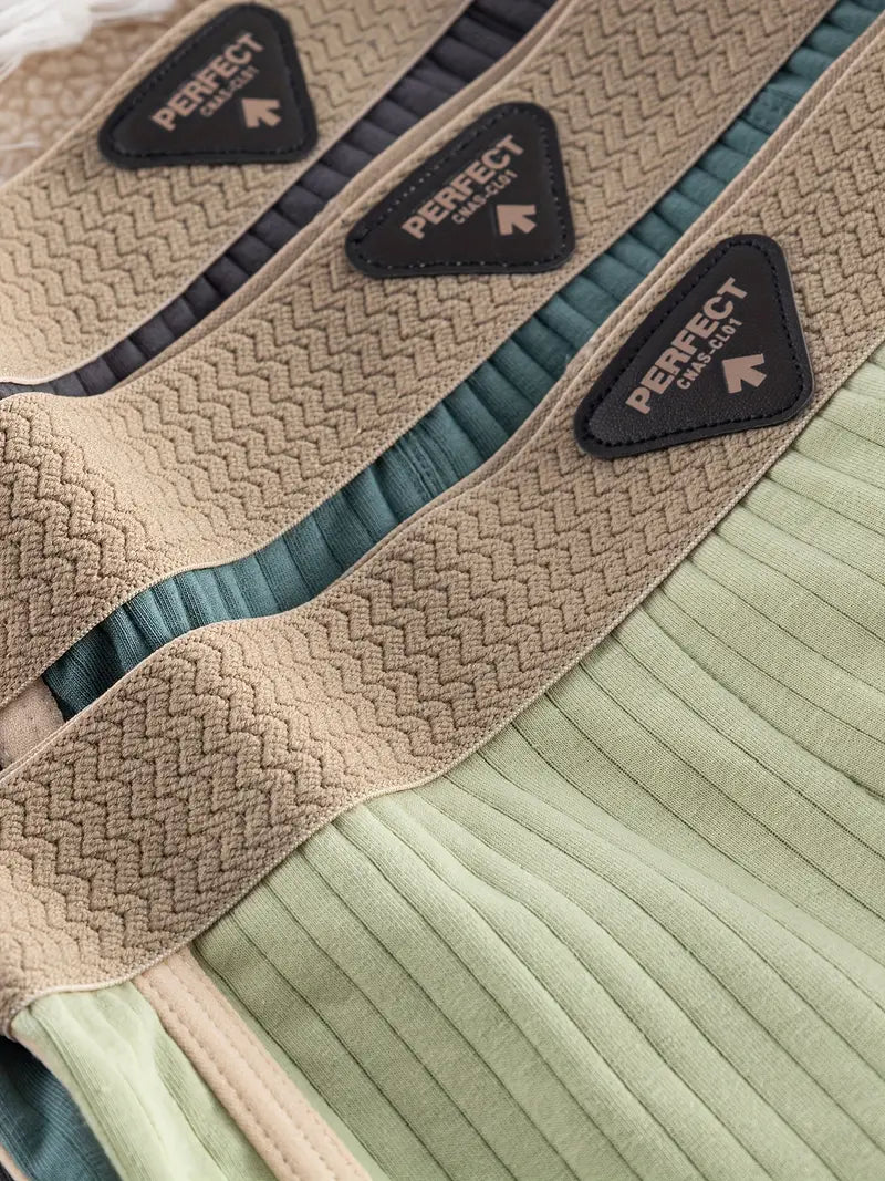 Elevate your everyday basics with this 3-pack of men's boxer briefs, featuring modern geometric and stripe patterns in soft neutral tones. Designed for both comfort and casual wear, these briefs are a versatile addition to your wardrobe.