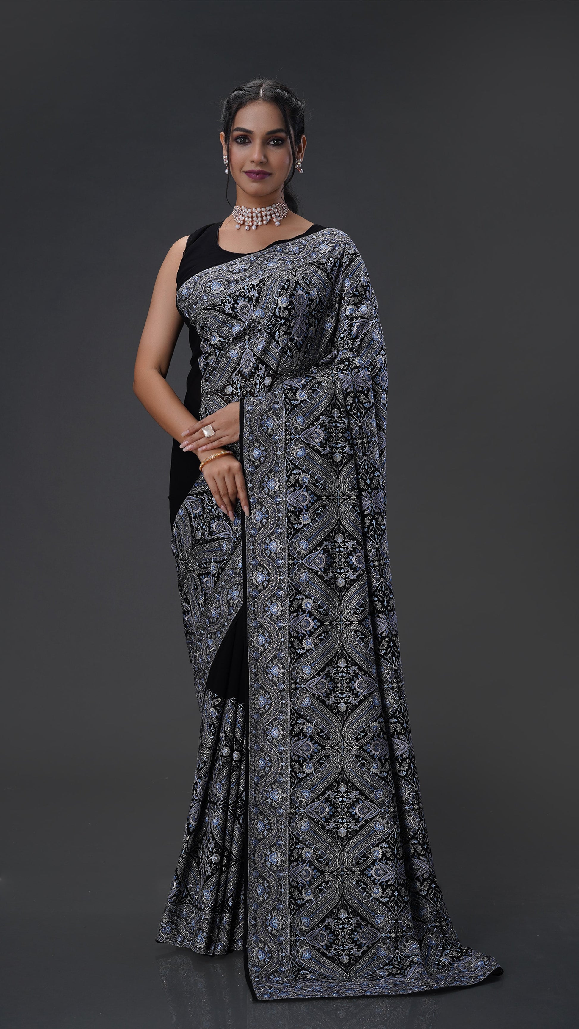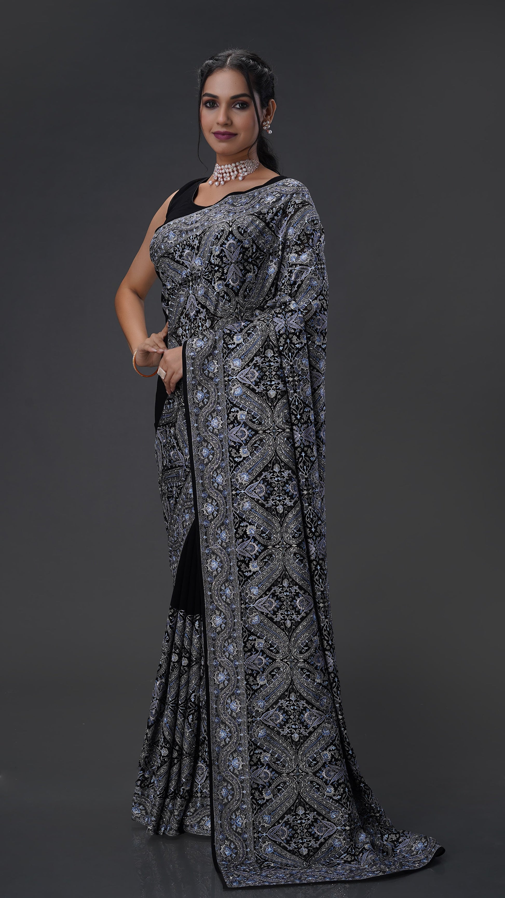 Elegant Black Georgette Saree Adorned with Sparkling Stones