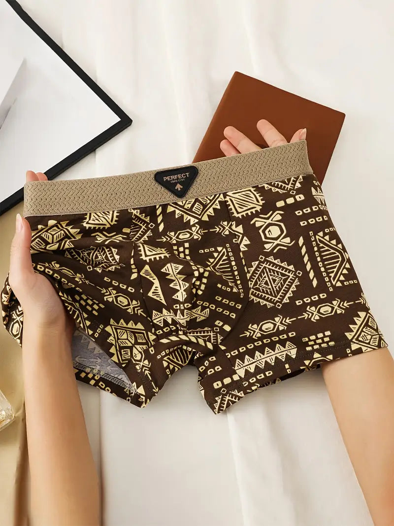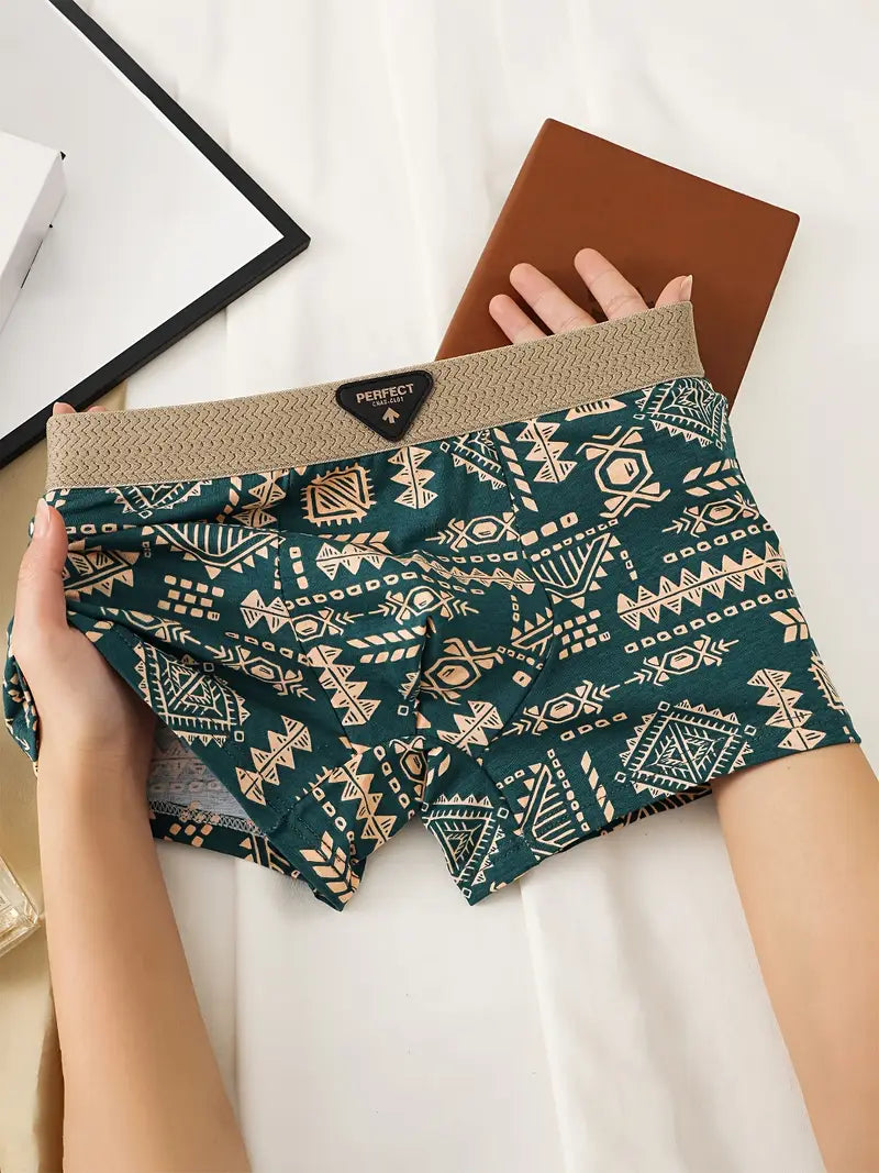 3pcs Men's Retro Geometric Print Boxer Briefs