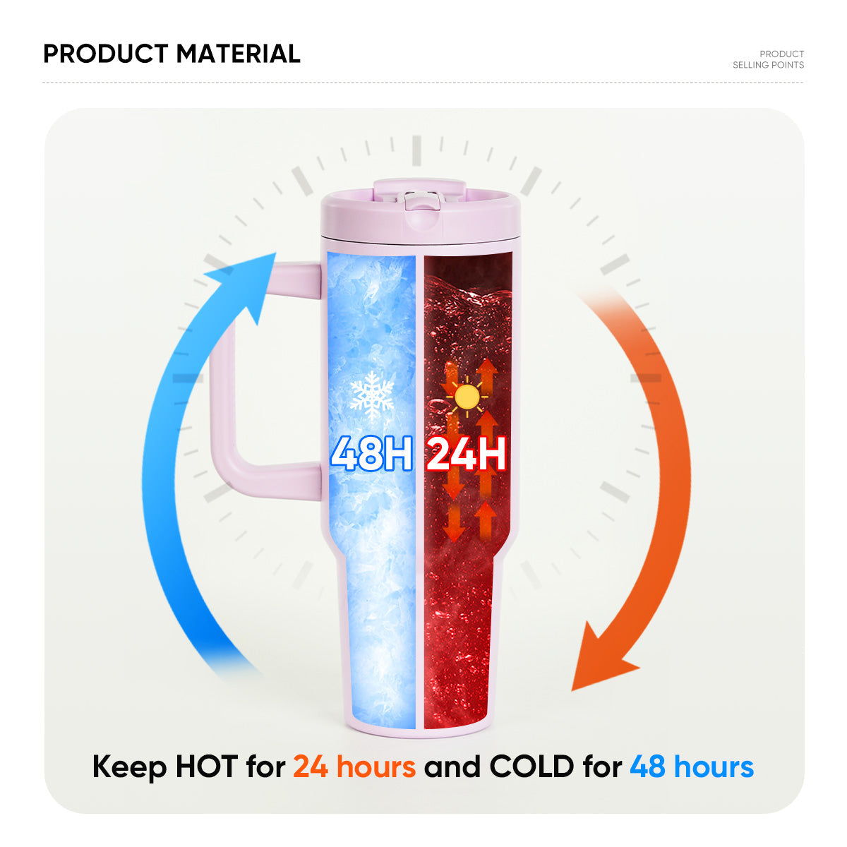 Classic colors feature fresh graphics with a soft texture on the handle and two-tone lid. Your water stays ice cold for hours, thanks to double-wall vacuum insulation. It’s ready to grab by the comfort-grip handle and fits in your car’s cupholder.