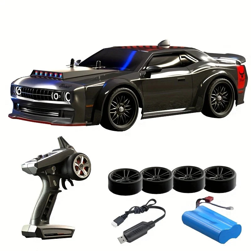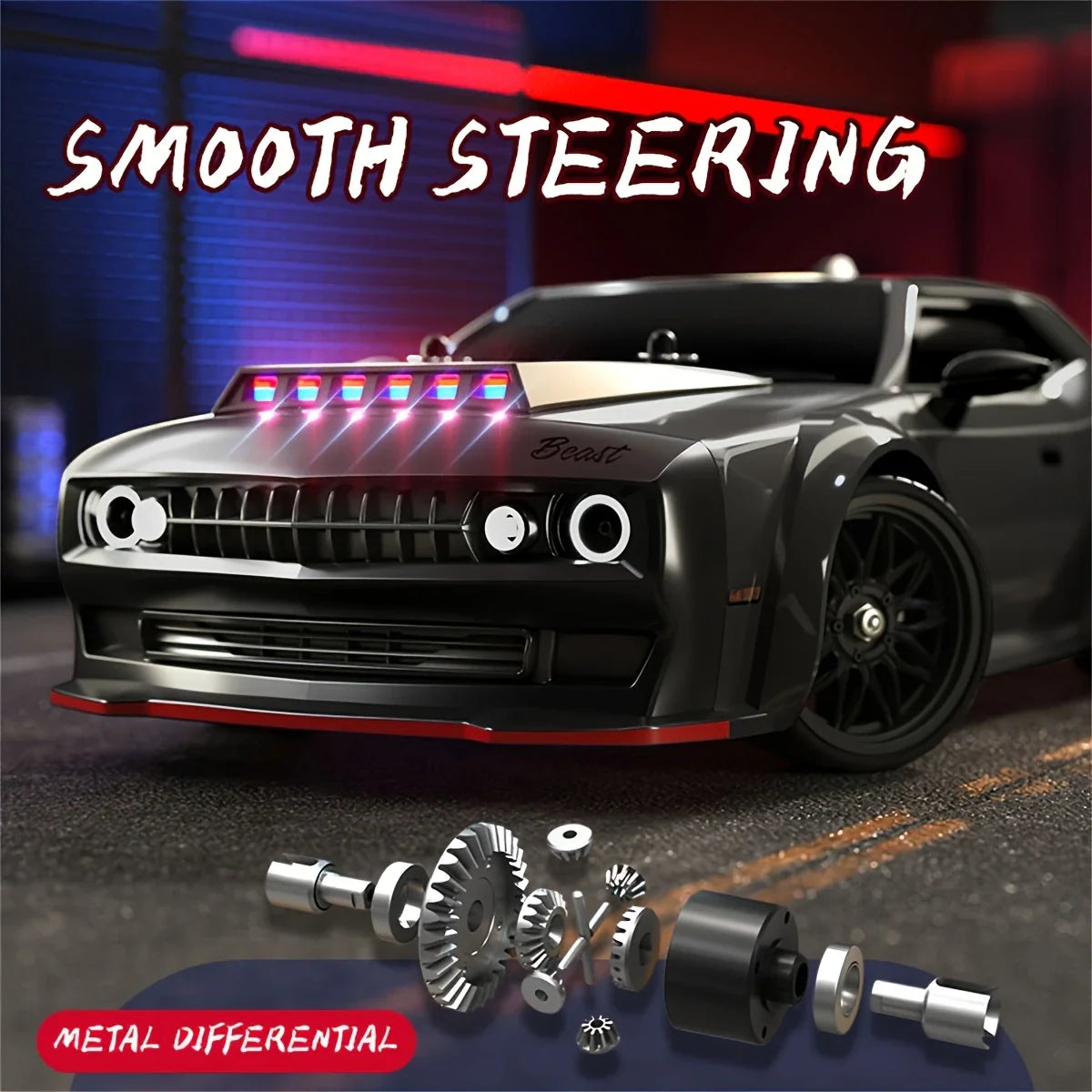 Whether you're drifting on asphalt, climbing rugged paths, or racing through dirt trails, this RC car delivers precision, speed, and reliability. Its robust design, coupled with LED lighting, makes it a standout choice for both day and night adventures.