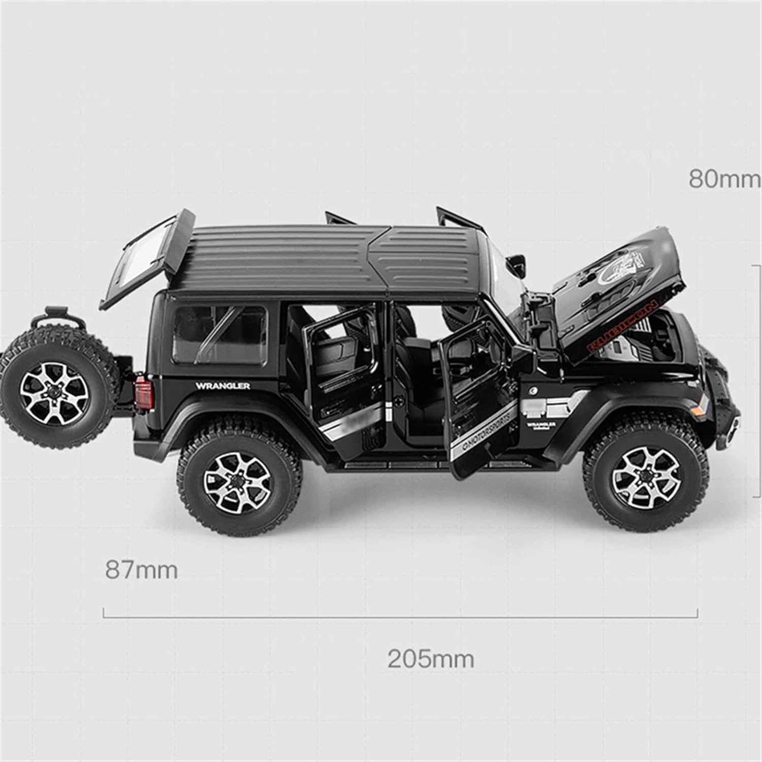 The 1/22 scale of alloy die-cast Jeep Wrangler models strikes a balance between size and detail. At this scale, the model remains compact enough for easy display yet large enough to showcase the essential features of the real vehicle. The proportionate size allows collectors to appreciate the Jeep's iconic design, from the rugged exterior to the precise interior details, while fitting conveniently in display cases or shelves. This scale provides a perfect representation for enthusiasts who want a realistic mini version of the Jeep without taking up too much space.