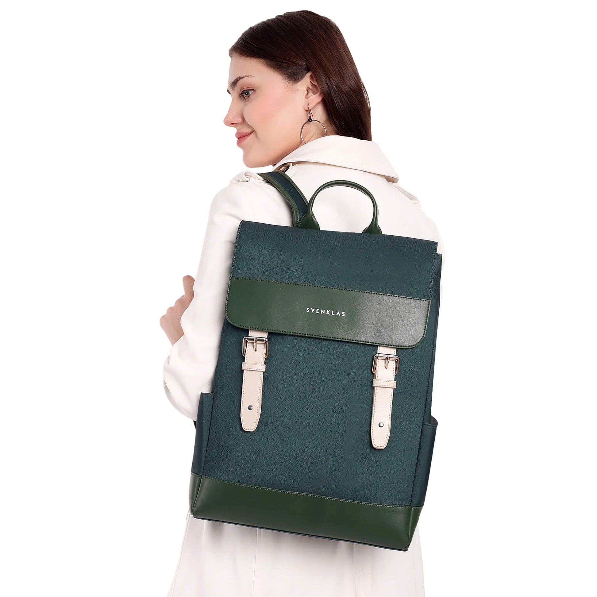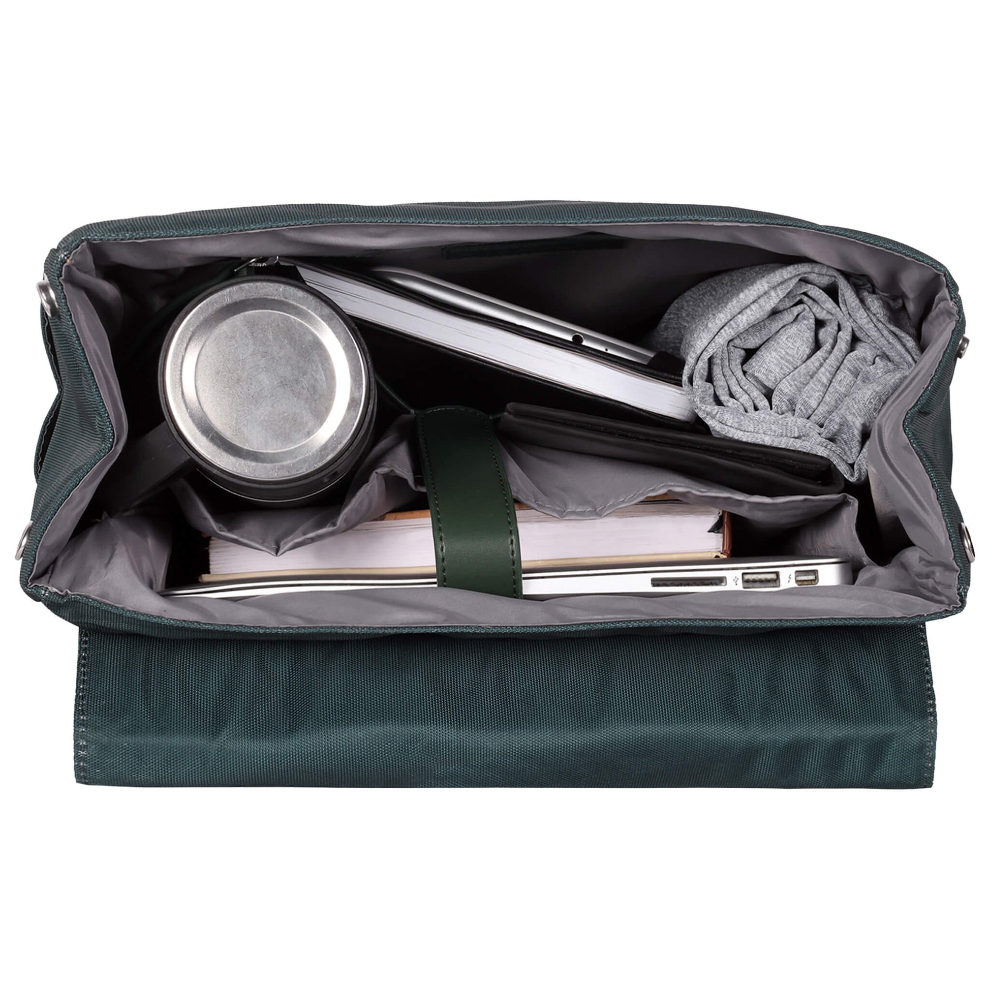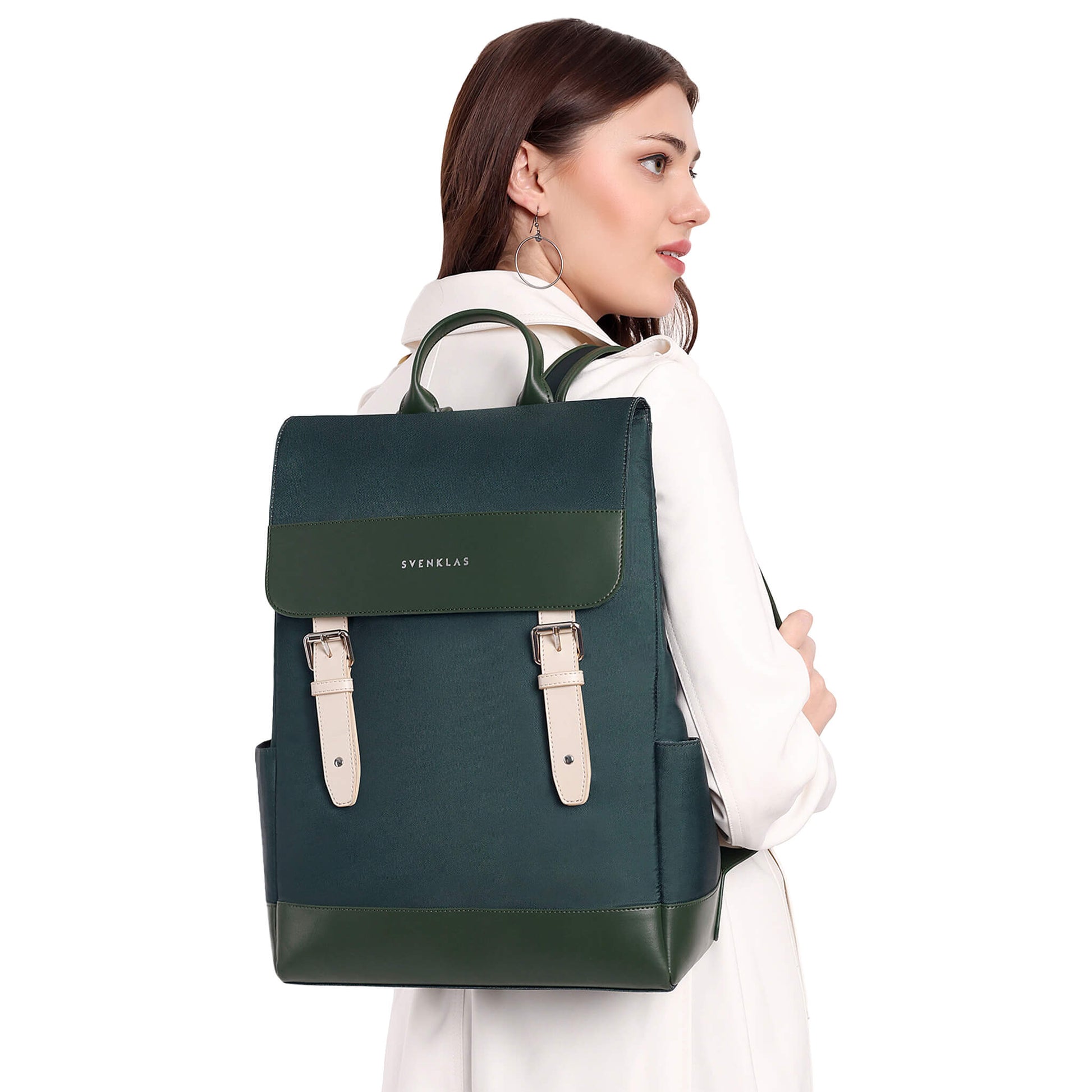 Leather detailing is used in the carry handle, flap tie, base, shoulder strap ends, trims, under the flap pocket, keychain holder, velcro closure, and inner binding.
