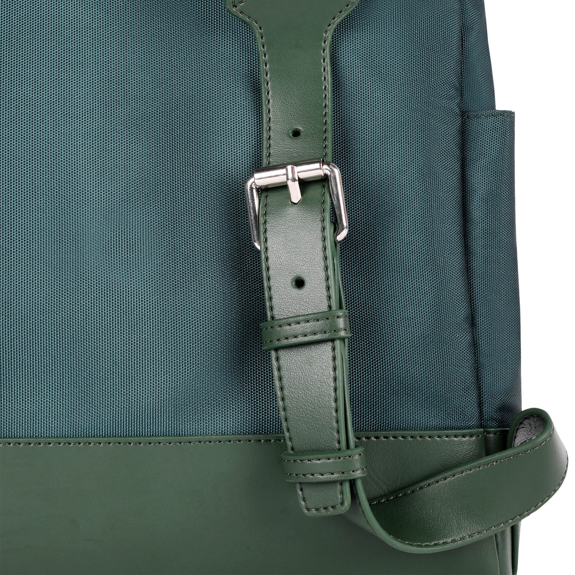 Adjustable shoulder straps with metallic buckle and leather accents for comfort and fit.