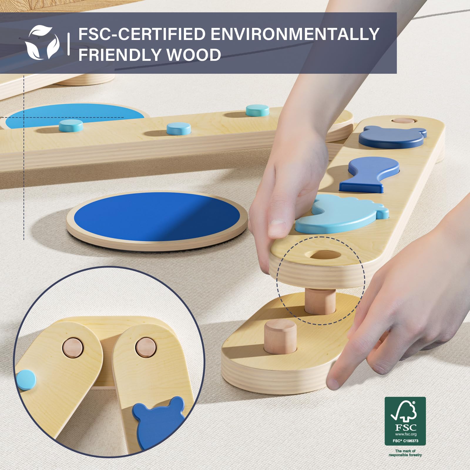 Eco-Friendly & Safe Play: Crafted from sustainable, FSC-certified wood and finished with eco-friendly paint, the BlueWood Balance Beam prioritizes both the planet and your child's safety. It meets rigorous safety standards (ASTM F963-17, CPSIA, CPC) for worry-free playtime.