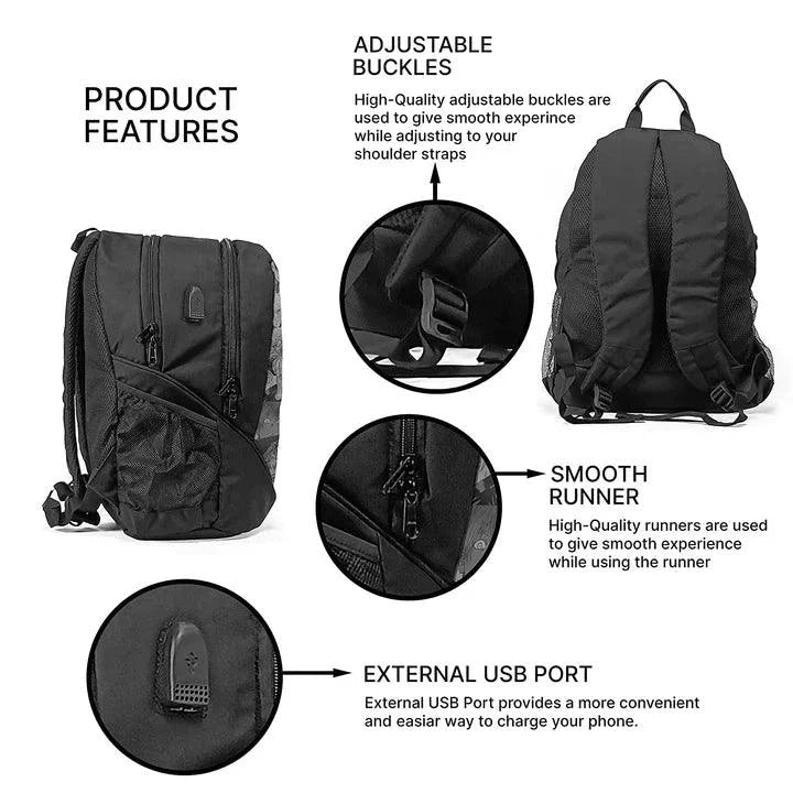 - Laptop pocket to carry all of your techs safely. Spacious, versatile, and tech-friendly. A USB port to charge your phone or electronic accessory.