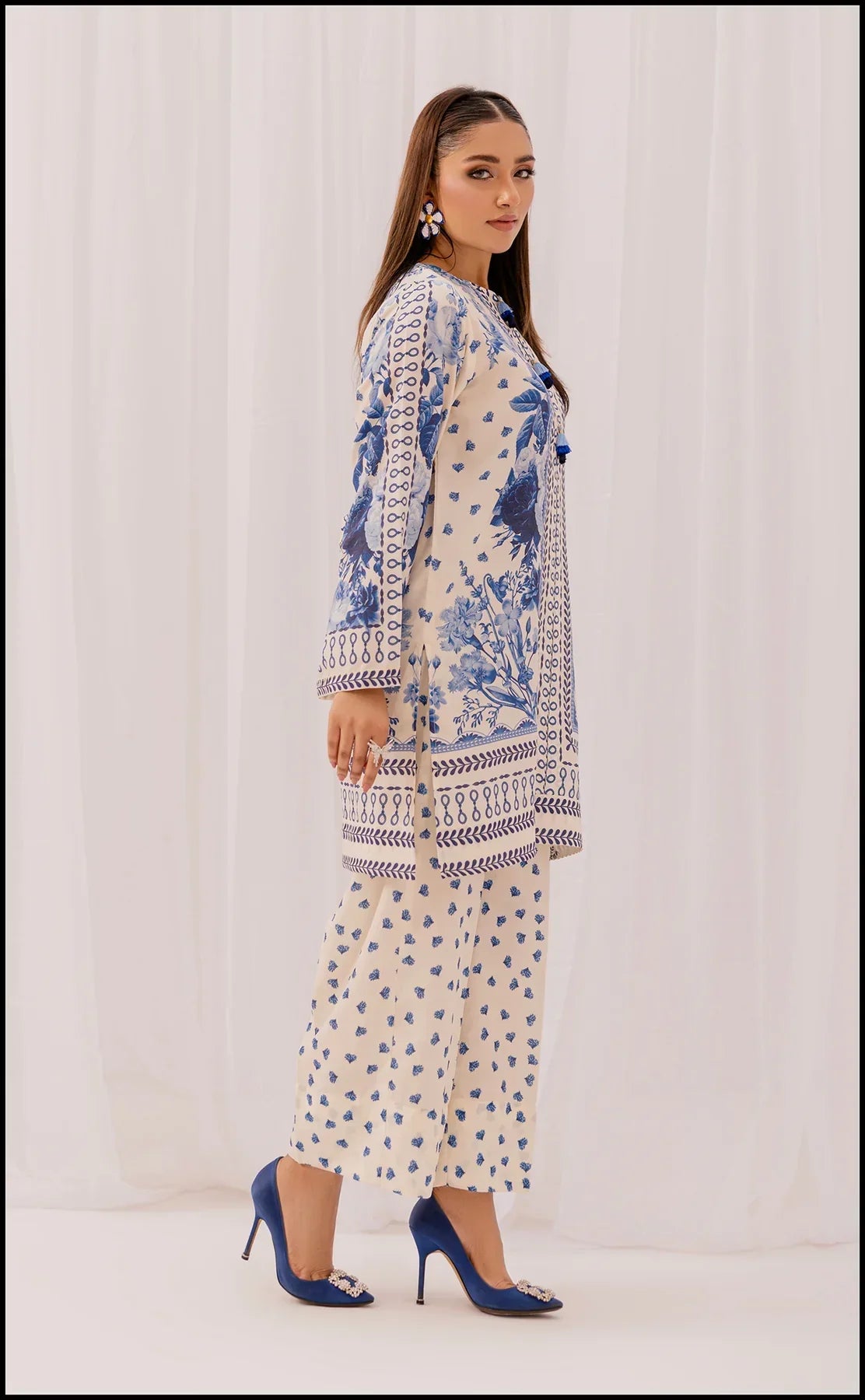 Made from chiffon with intricate sequin embroidery; includes a matching chiffon dupatta.