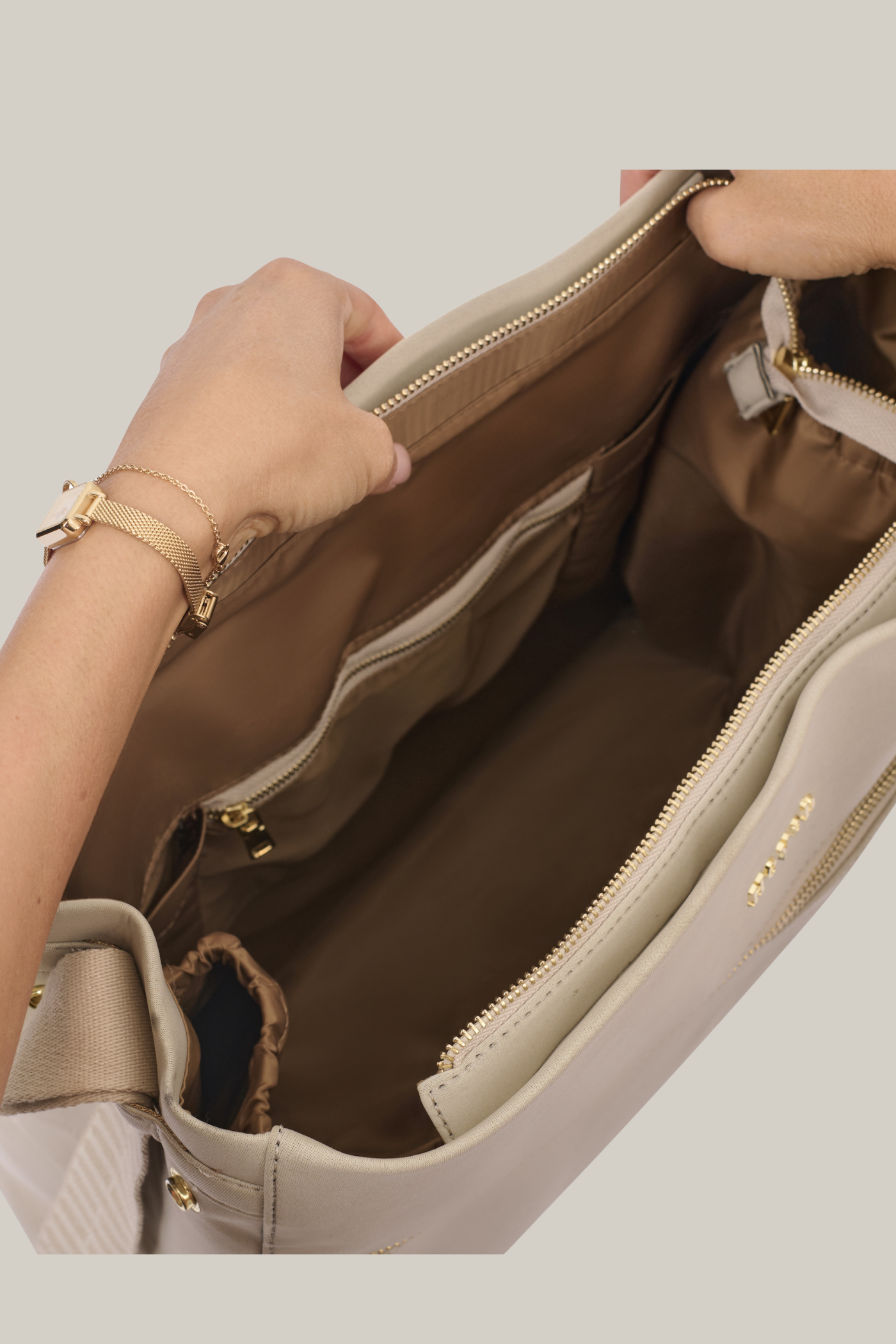 Meet your companion for everyday escapades. Effortlessly lightweight, it seamlessly transitions between tote and backpack with its convertible straps. Featuring 11 compartments, including insulated drink bottle pockets, luggage pass-through band and a complimentary change mat/laptop sleeve, it's the ultimate choice for chic, on-the-go parents, professionals and travellers.