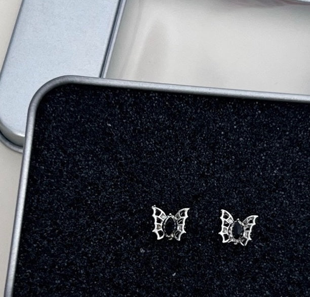 Bat earrings, black earrings, silver earrings, grunge earrings, Pinteresty accessories, gifts for girls
