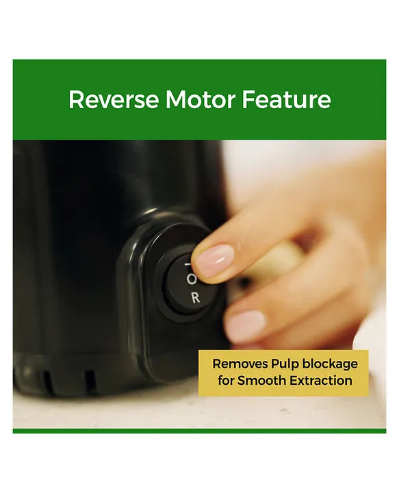 Reverse Motor Feature: Helps clear pulp blockages, ensuring smooth and uninterrupted juicing.