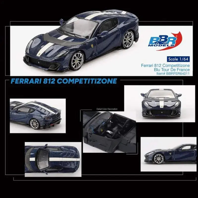 The BBR Ferrari 812 Competizione Blu Tour De France (Pre-Order) is a high-quality, highly detailed die-cast model of the Ferrari 812 Competizione, crafted by BBR Models. This 1:64 scale model is designed to capture the elegance and performance of the real Ferrari 812 Competizione, a luxury sports car that epitomizes Ferrari’s racing heritage and advanced automotive engineering.