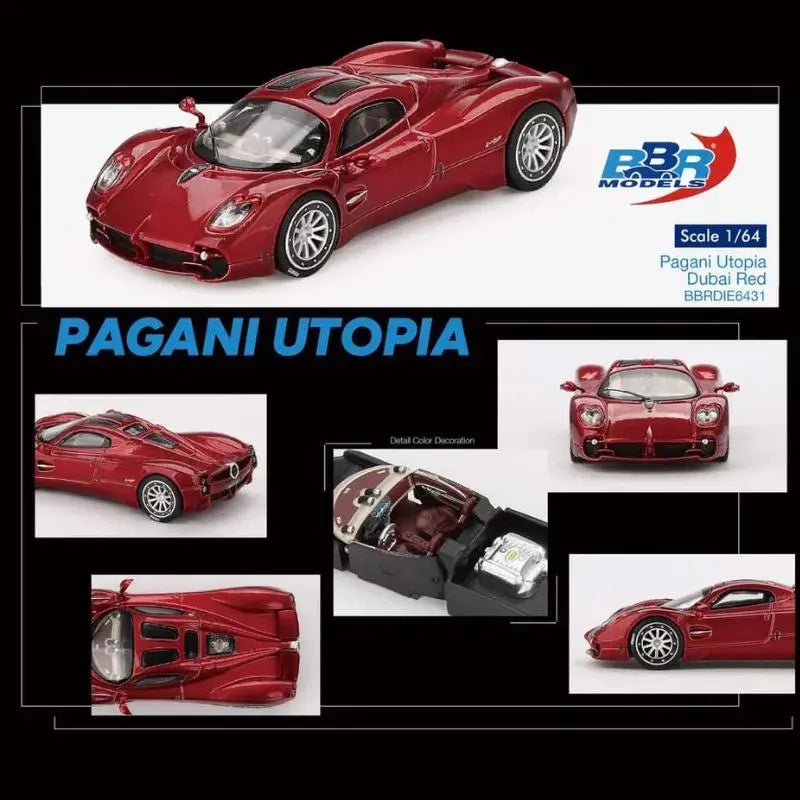 The BBR Pagani Utopia Dubai Red is a 1:64 scale diecast model of one of the most exclusive hypercars ever made—Pagani’s Utopia. Crafted by BBR Models, renowned for their high-precision, officially licensed Ferrari and hypercar miniatures, this limited edition piece is a collector’s showcase of design excellence and automotive artistry.