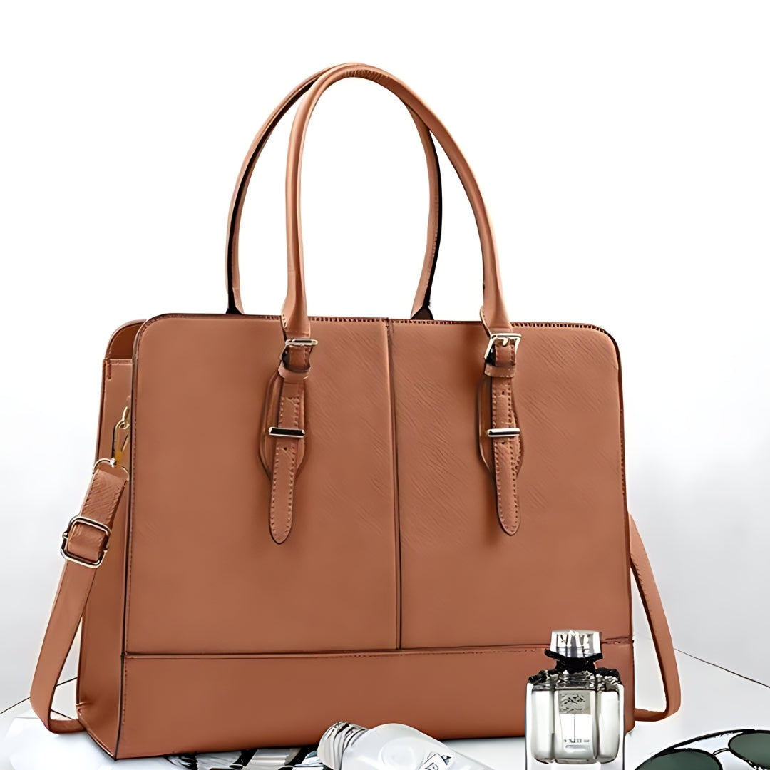 High-quality Laptop Bag - Made of premium Vegan leather and high-density nylon lining, this laptop bag for women is water-resistant, scratch-resistant, wear-resistant, and anti-wrinkle. Equipped with smooth zipper, sturdy metal accessories and the reinforced stitching at each stress point, make this women’s laptop bag more durable. In addition, metal feet base protects your bag from damage.