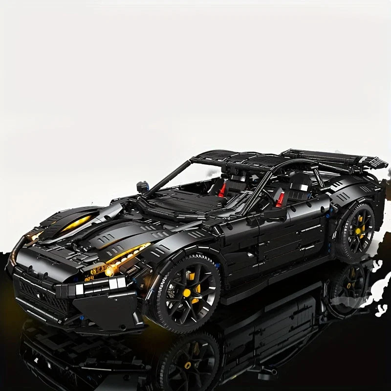Black Sports Car Building Blocks Set, High Difficulty MOC Model