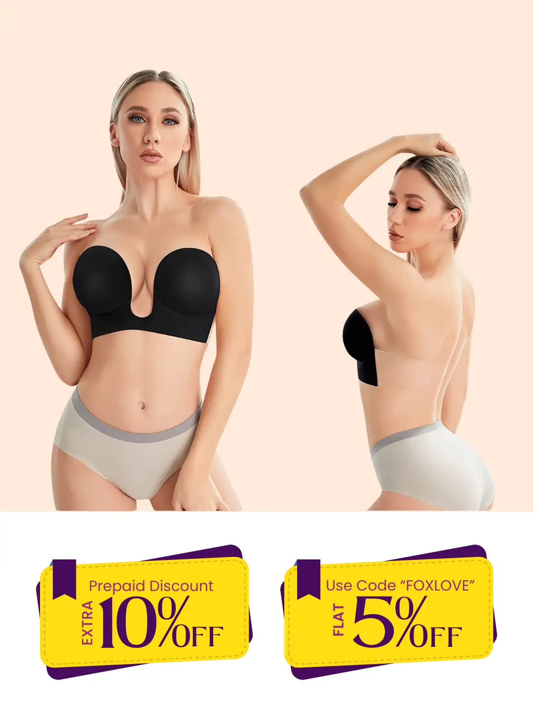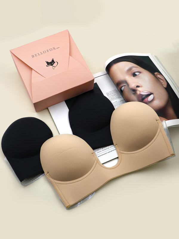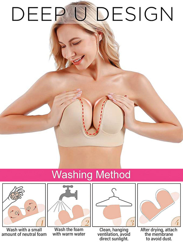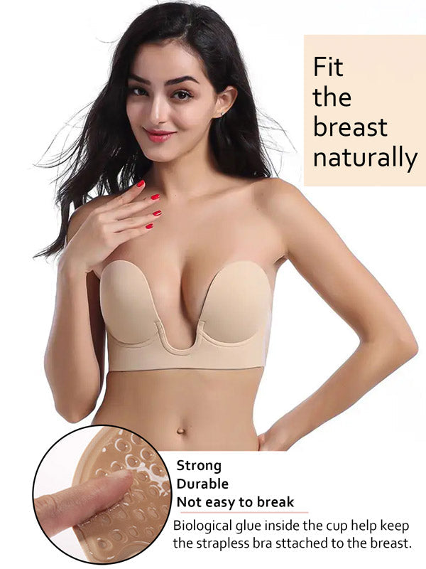 - 【U-Plunge and Good Chest Shape】Our strapless push up bras for women with deep plunge design work to subtly enhance the sexy cleavage by pulling the bust in and up and create a fuller shape. Silicone lift adhesive bras for women with invisible wings on both sides can be adjusted according to the tightness and provide much your breast needed hold. Our magic plunge bra of low cut coverage design and smooth look can meet the needs of different outfits, flattering small and plus size bust ladies.