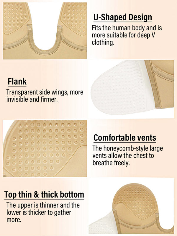 - 【Amazing Gathered Effect 】Low back bra for backless dress has high-strength stickiness, so you don't have to worry about slipping off easily even if you wear this invisible lifting bra for a long time. The sticky bras with plunge design for great lift brings an impressive Push Up Effect, provide support for the adhesive bra to easily gathers your breasts and lift your breasts to increase the size of your natural breast line, making your breasts add up one cup and sexy deep U-shaped cleavage.