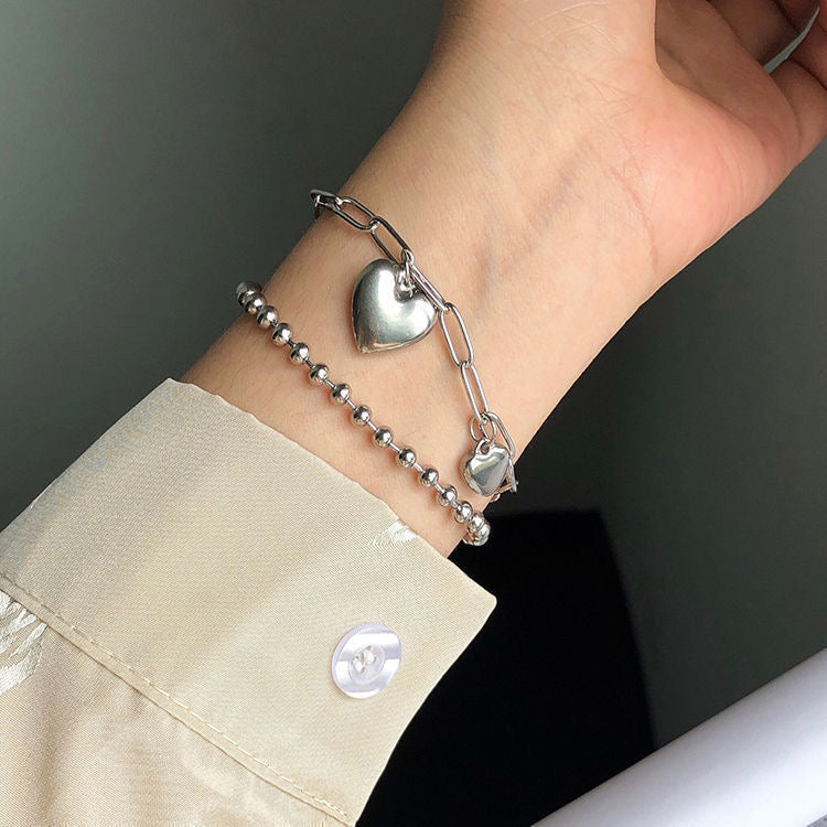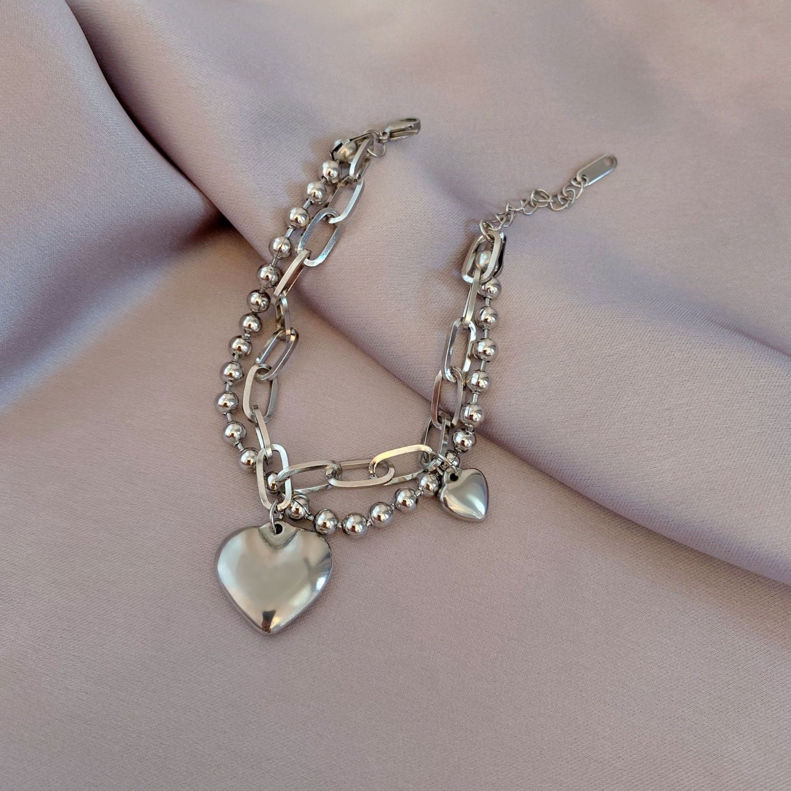 Silver bracelet, heart bracelet, Pinterest inspired jewellery, anti tarnish bracelet, stainless steel bracelet, beaded bracelet, silver jewellery