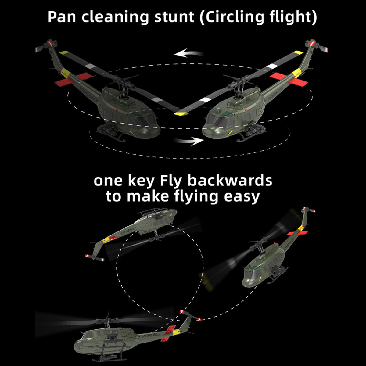 UH-1 helicopter designed and manufactured by the U.S. Bell Helicopter (company number 204 helicopter), according to the U.S. military naming tradition officially named “Iroquois” (one of the aboriginal tribes of North America, the name of the Iroquois Tribe), and Bell Helicopter another nickname for Huey, the name “Huey” is more widely known. “The Huey is better known as the UH-1 helicopter, a multi-purpose design with the U standing for Utility, ranging from utility operations to attack missions. The UH-1 was the first helicopter equipped with a turboshaft engine to be fielded by the U.S. Army. This product is based on the aircraft as a prototype using a single propeller without aileron design, 6-axis electronic gyroscope stabilization, and adding barometer height, optical flow positioning, TOF LIDAR height, flight more stable, easier to maneuver! Ultra-long endurance! Impact resistant! The shape is scaled down according to the real aircraft, not only can you maneuver the flight can also be used as a pendant. c032 endurance time can reach about 13 minutes!