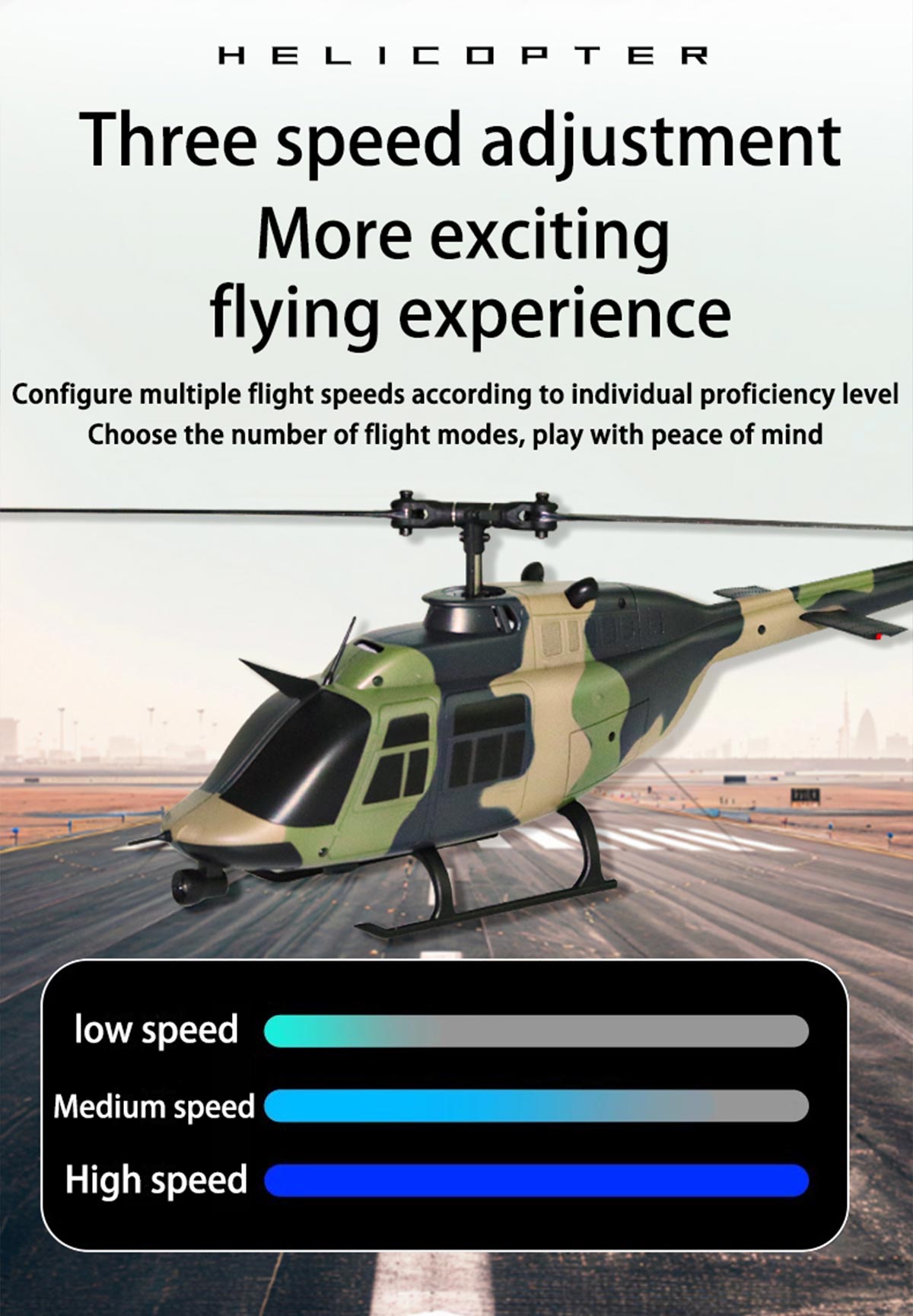 1. Flybarless design, using aerodynamic principles to design propellers to provide strong power and self-stability. The 6-axis gyroscope is used for super stable flight.