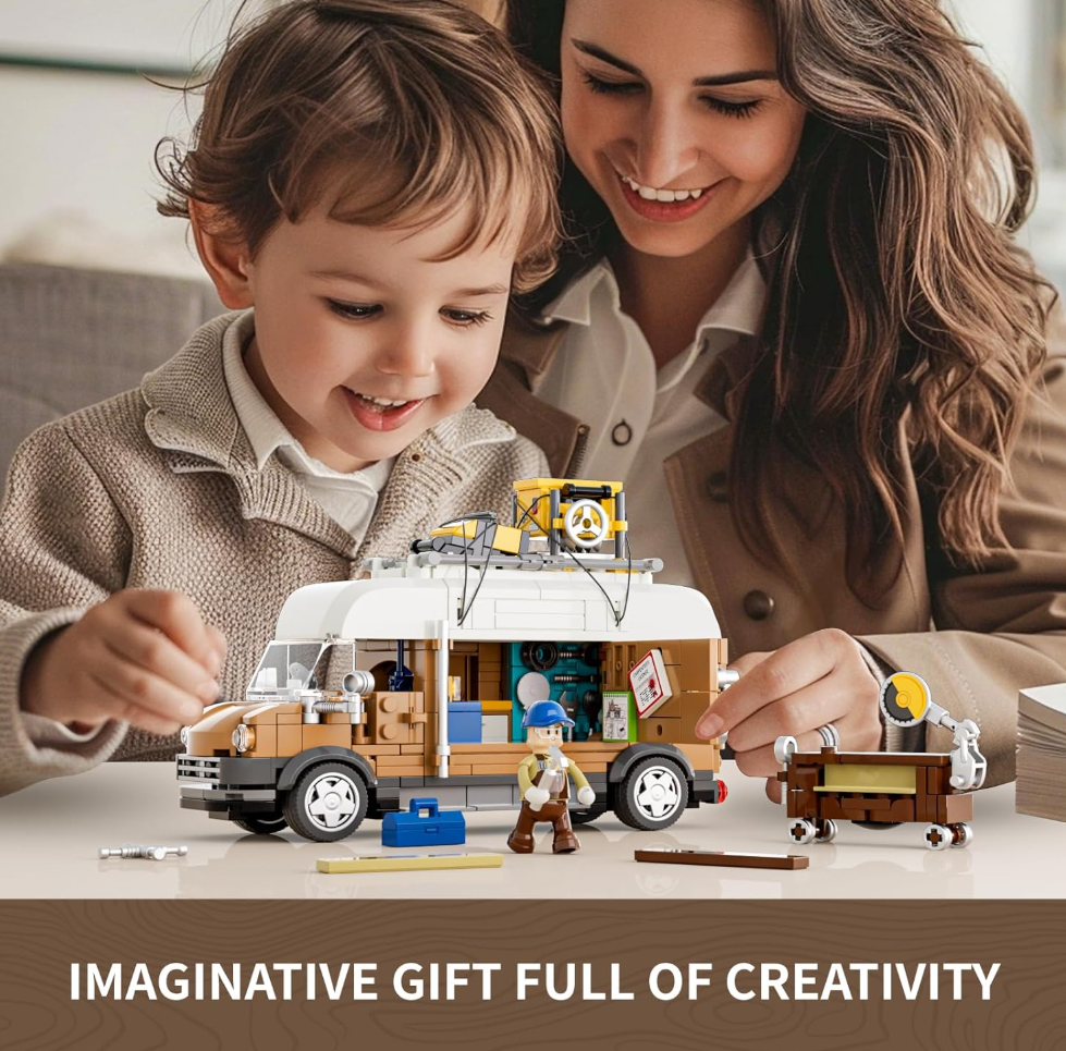 The Carpentry Van Lighting Building Bricks Set is a meticulously designed 496-piece construction kit that brings the charm of a rustic woodworking van to life. This set combines intricate detailing with functional design, making it a perfect addition to any collection or a thoughtful gift for enthusiasts aged 8 and above.