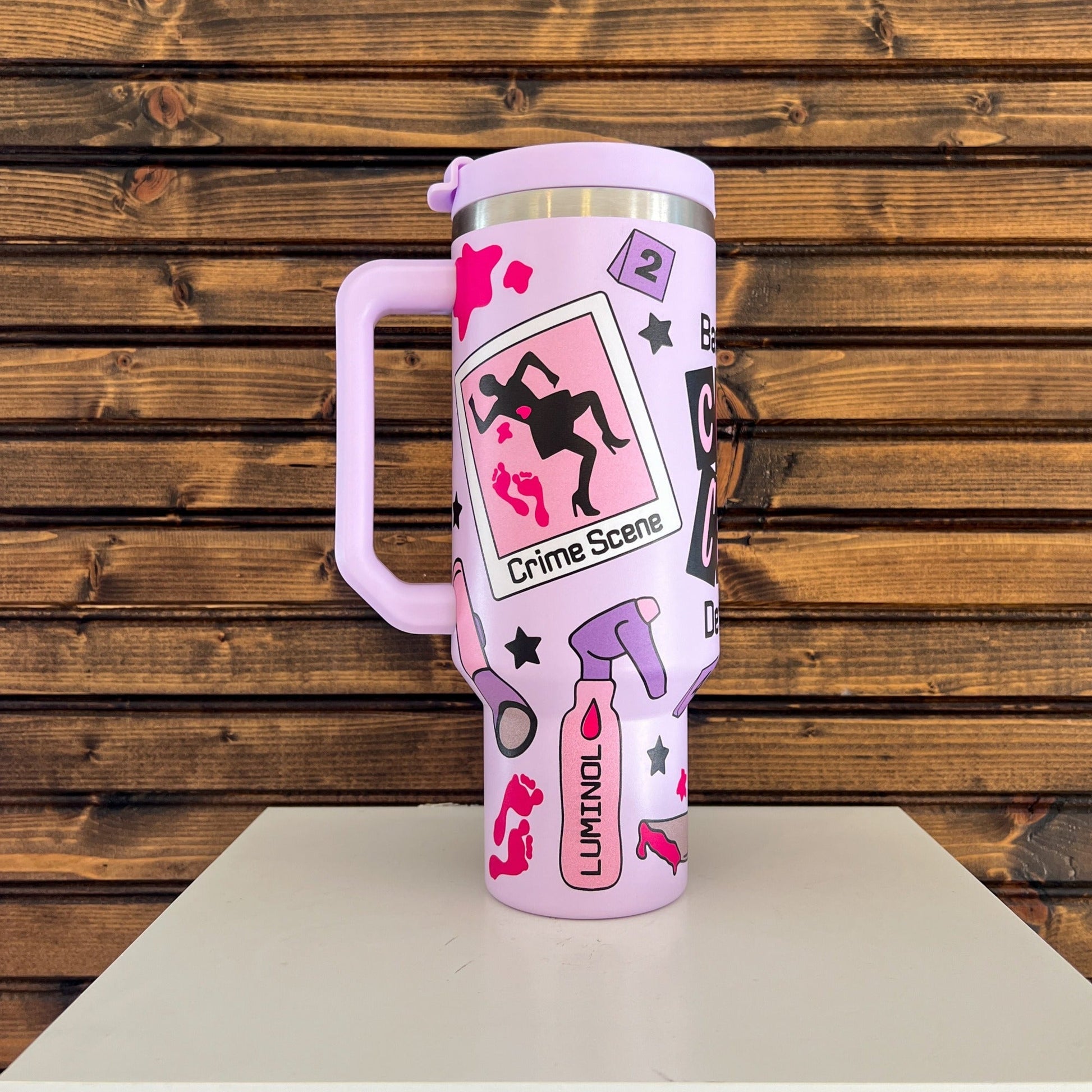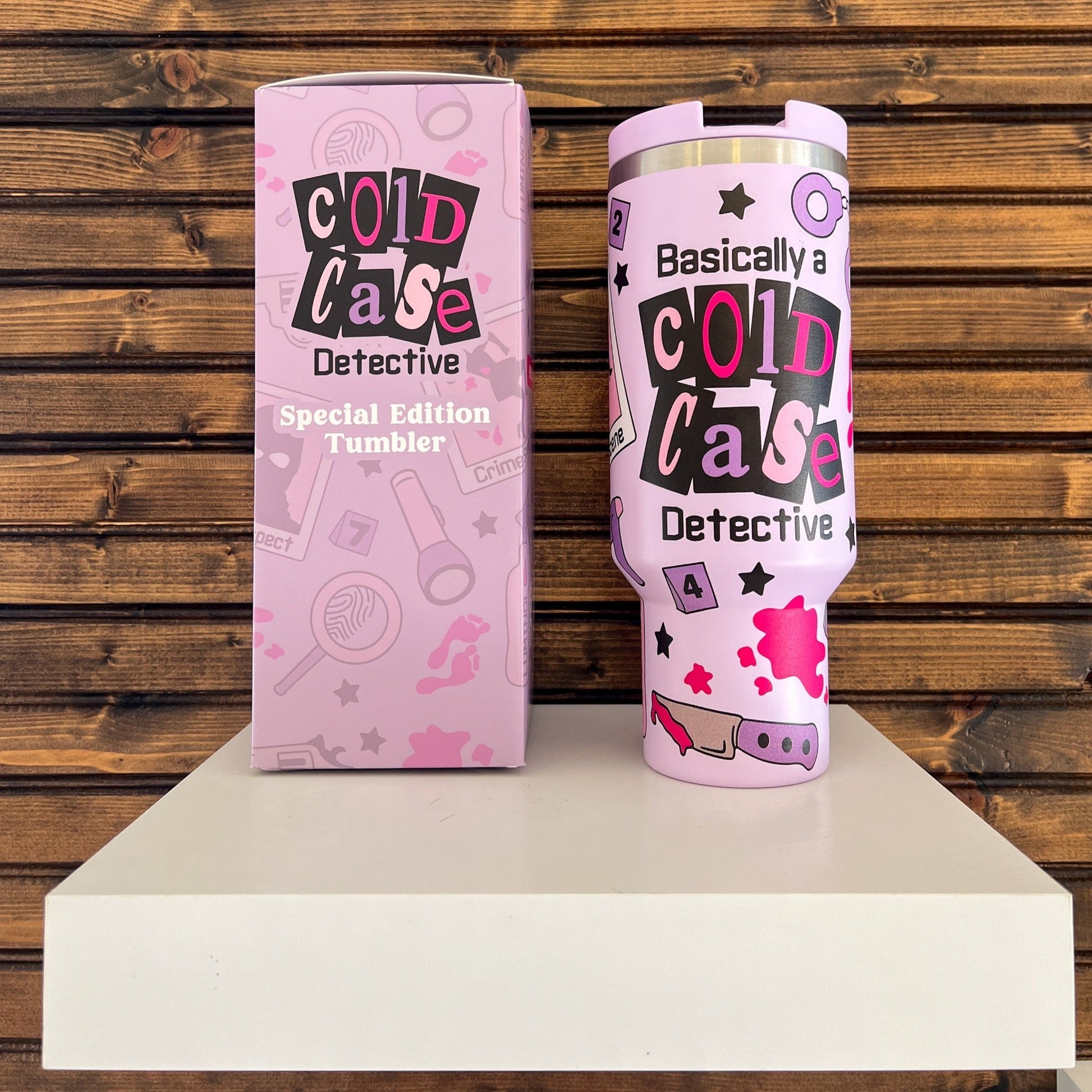 Solve every cold case with our 40 oz NewGen Tumbler! Made for true crime lovers, this stainless steel tumbler comes in a gift box for the ultimate detective experience. Preorder now for the perfect gift to crack any case!