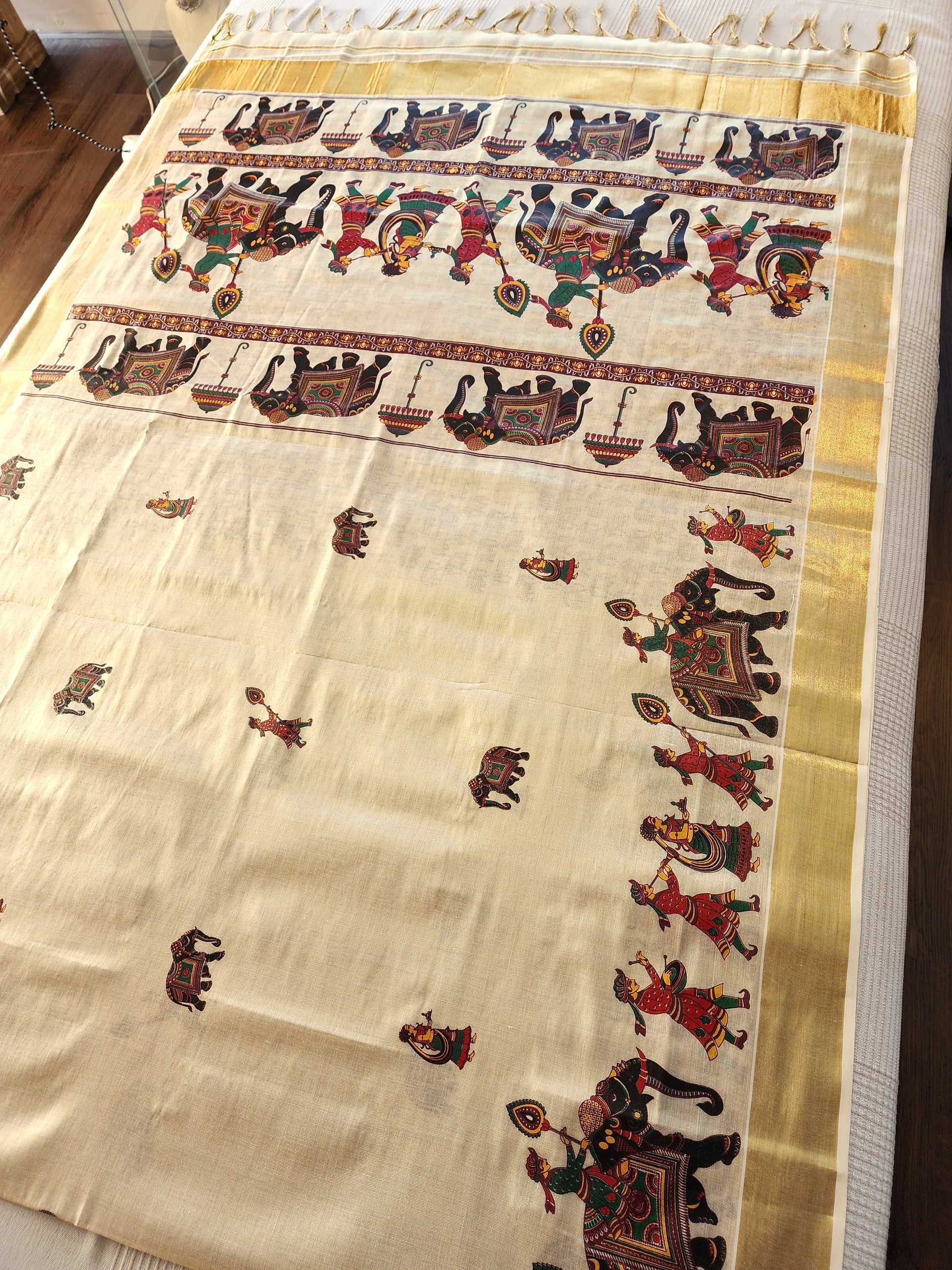 - Worn in the state of Kerala, this is a contemporary take on the white and gold Kerala Kasavu saree
