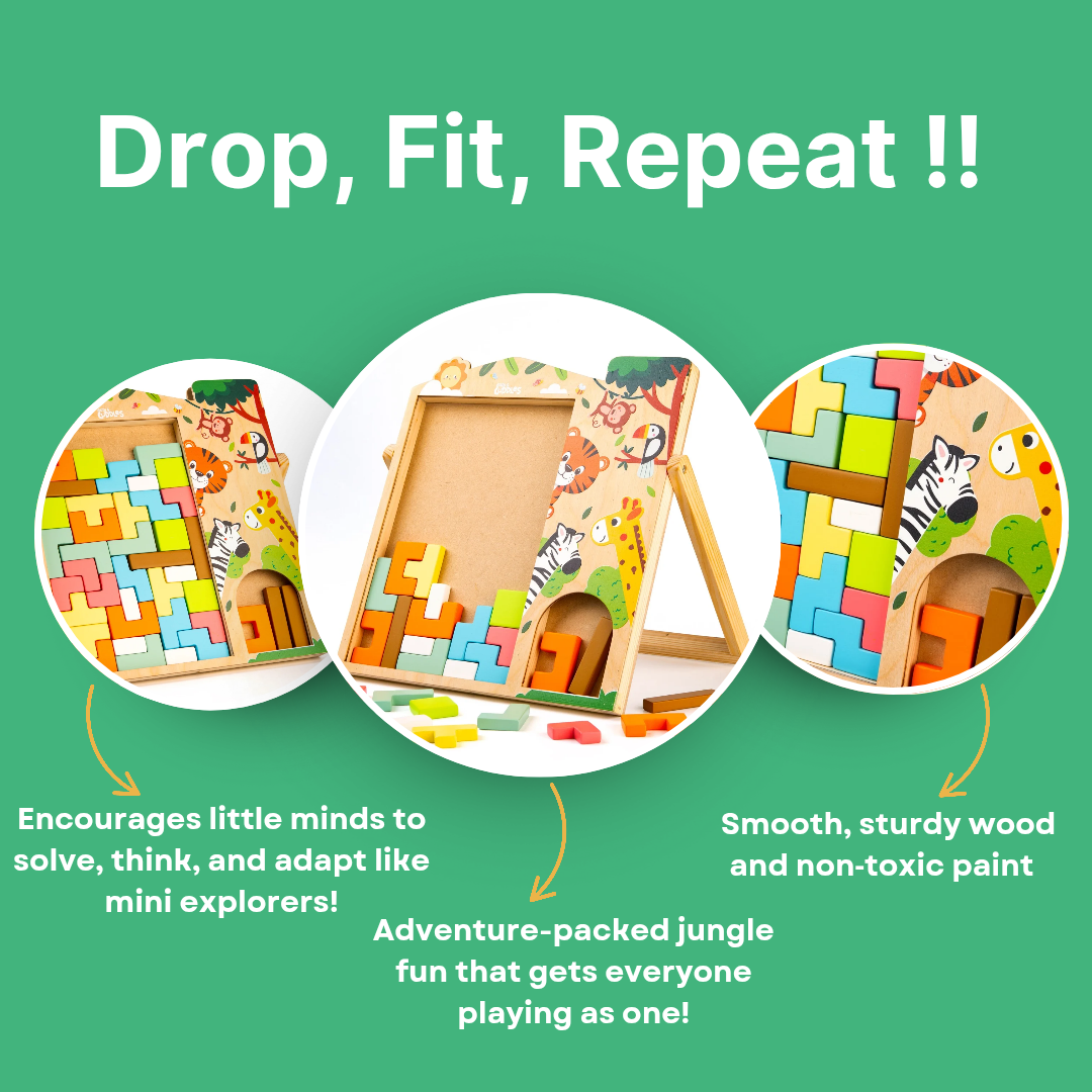 - š§© 2-in-1 Fun & Learning ā Classic wooden Tetris puzzle combined with a writable easel stand for endless creativity.