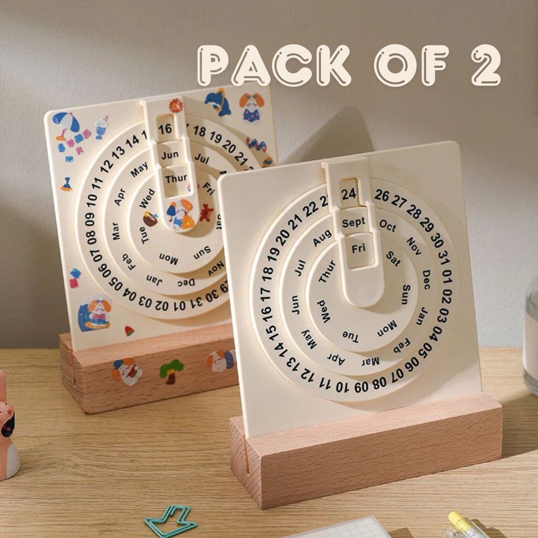 Stay organized in style with the Pinteresty Perpetual Desk Calendar. Designed with a unique circular layout and a wooden base, this calendar never expires and doubles as a modern desk décor piece.