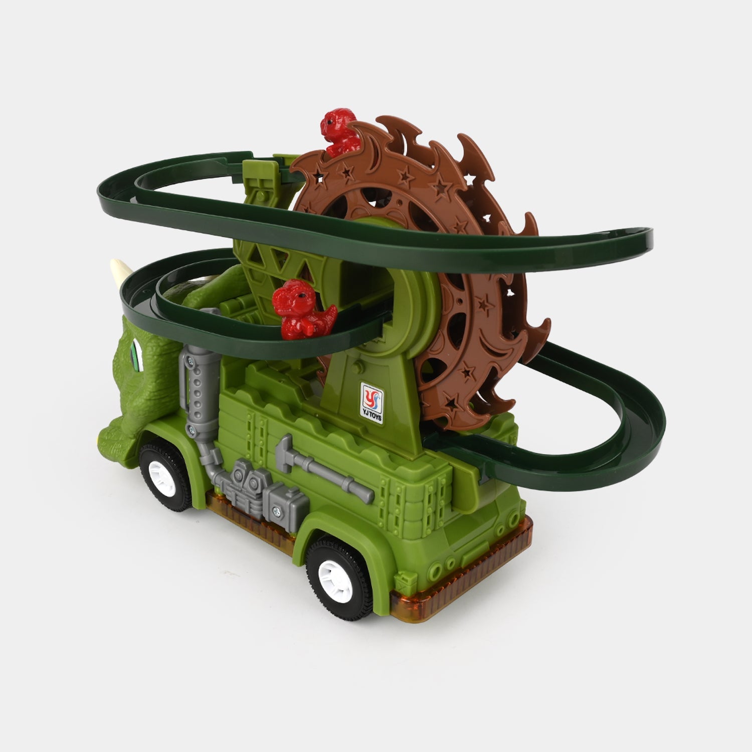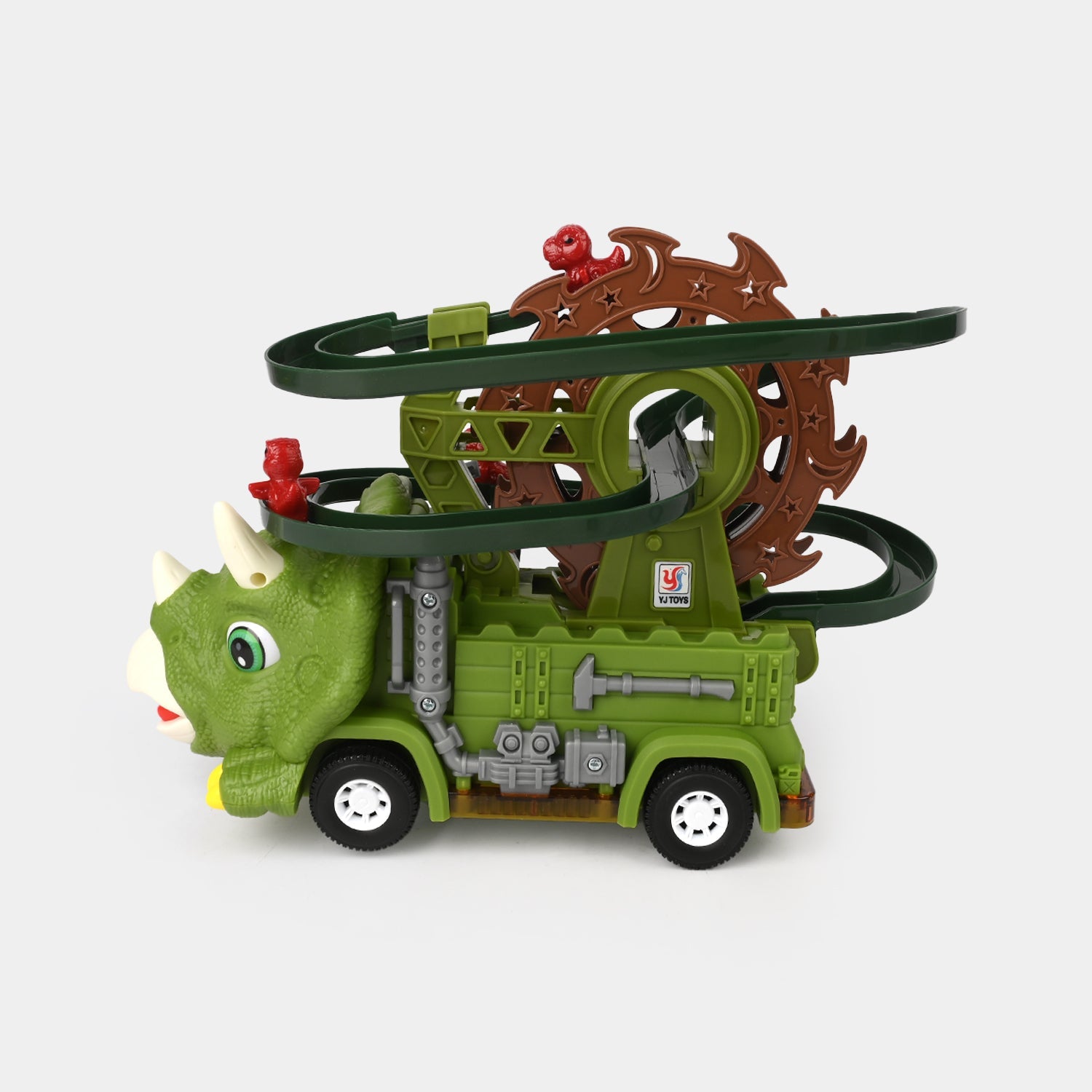 1. 2-in-1 Design: Transforms from a Triceratops vehicle into a complete track playset, offering dual modes of play.