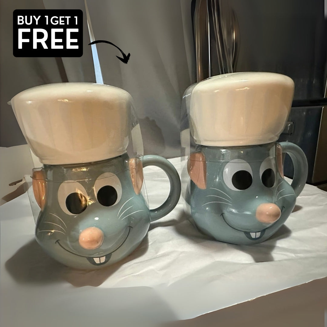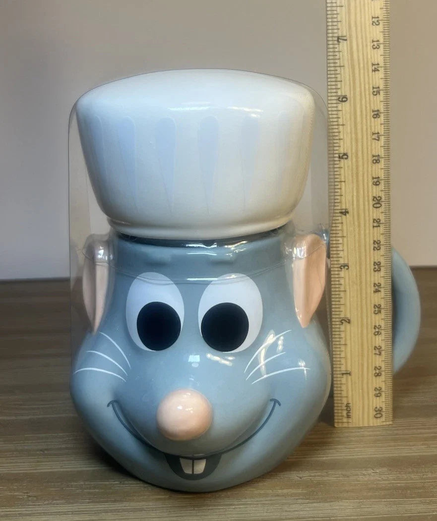 Start your day with a smile and a dash of magic from Remy, the culinary genius from Disney Pixar’s Ratatouille. This sculpted ceramic mug brings the charm of the movie to your kitchen, featuring Remy’s adorable face complete with big eyes, pink nose, and his iconic chef hat.