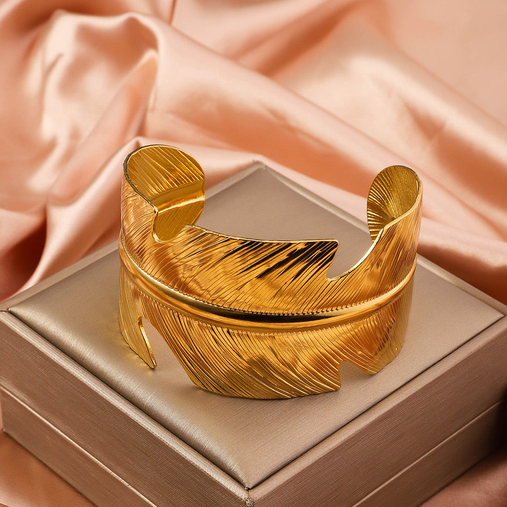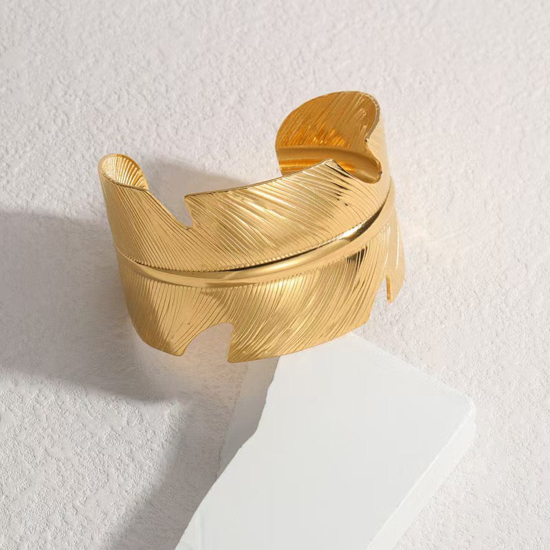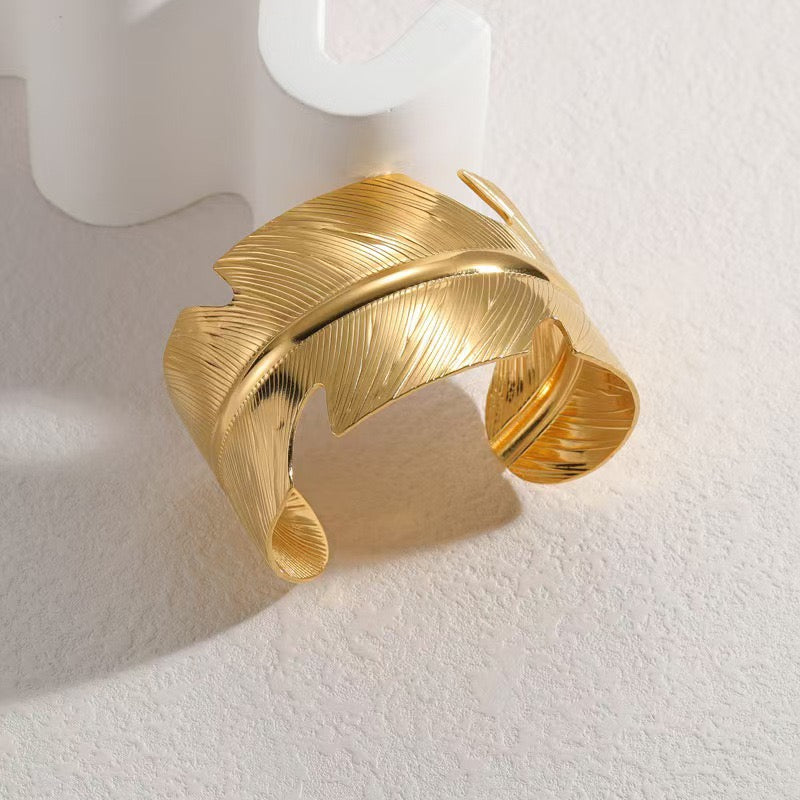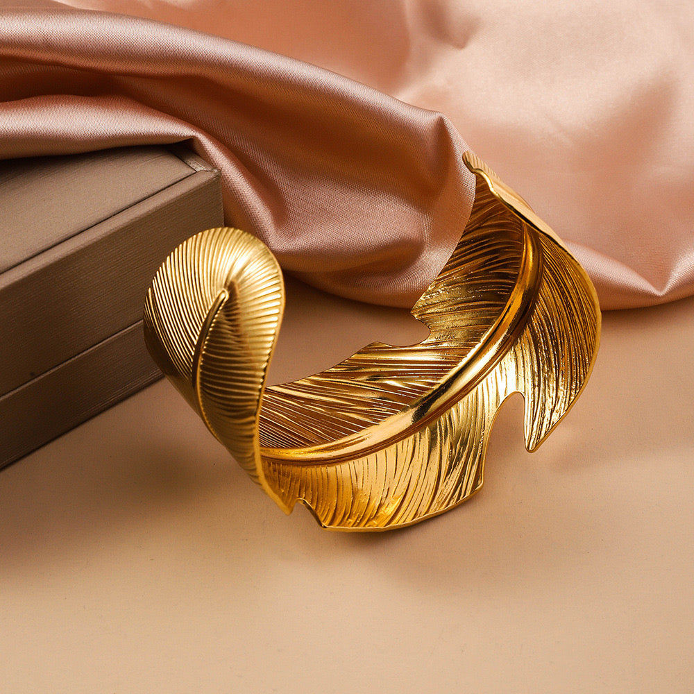 Handcuffs, gold bracelet, leaf bracelet, stackable bracelet, Pinterest accessories, chunky bangles