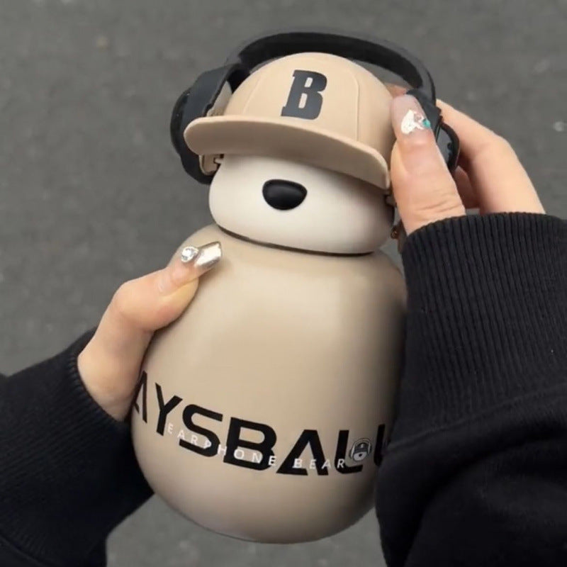 βΎοΈπ» Earphone Bear Water BottleΒ | π§ Leak-Proof & Durable Design | π Adorable Sports-Inspired Bear Design | π Keeps Drinks Fresh All Day