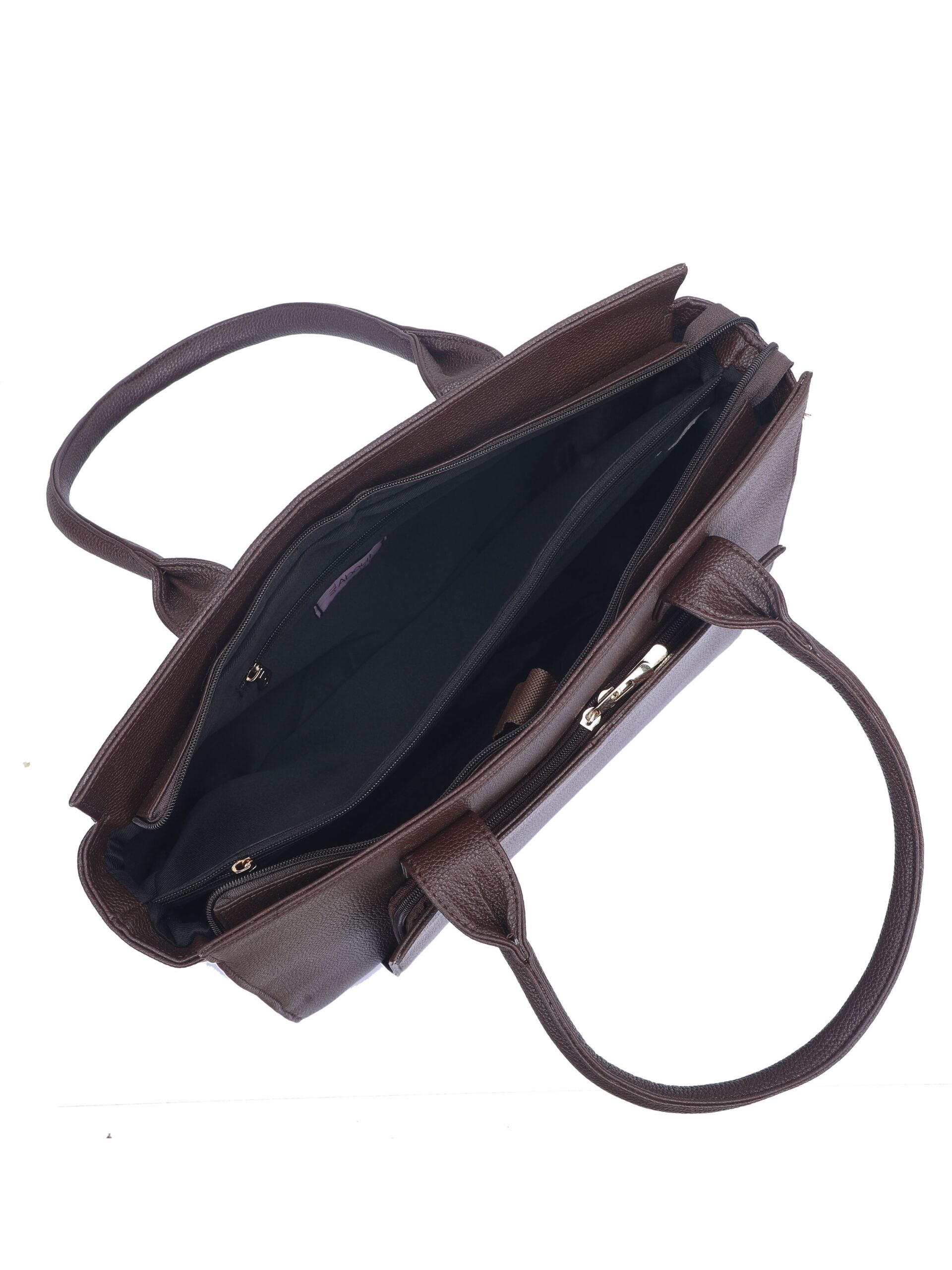 Upgrade your daily commute with the Elite Laptop Tote Bag in a timeless brown finish. Crafted from high-quality vegan leather, this tote combines style with practicality — perfect for the modern woman on the go. Designed to hold laptops up to 15.6 inches, it features a padded compartment to protect your device, along with multiple pockets to organize everything from chargers to notebooks and essentials.