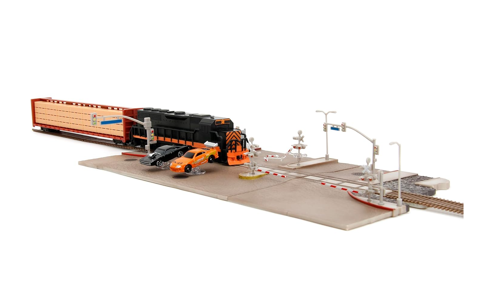 Recreates the legendary final race and train-jump moment from the original Fast & Furious film.