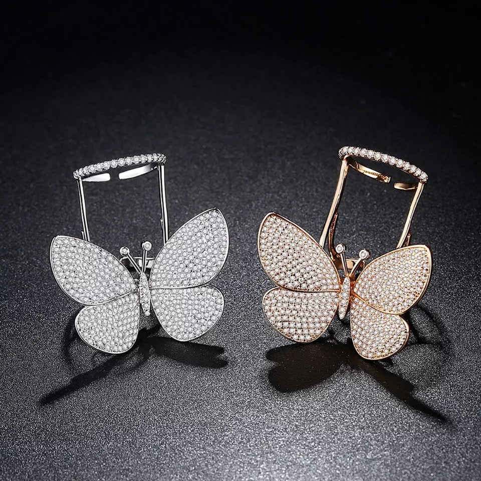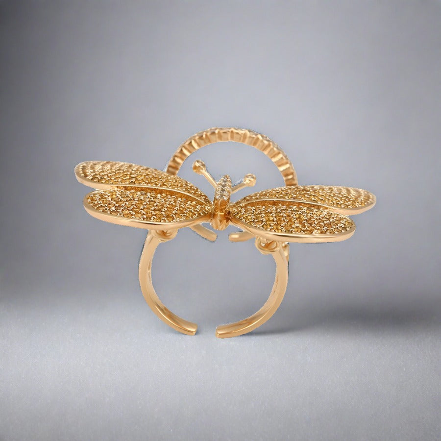 Flying Butterfly Diamond Ring - 18KT Gold Plated (Re-Sizable)