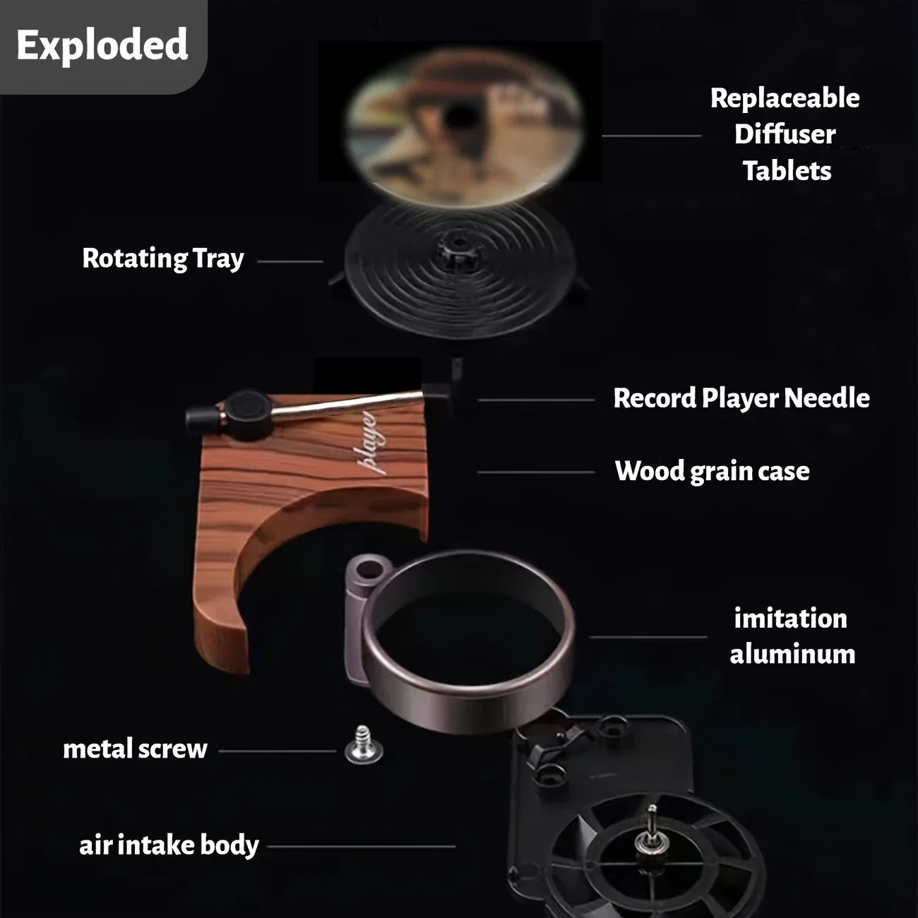Imagine your favorite tunes playing while a soft, refreshing scent flows through your car — and a tiny spinning vinyl completes the moment. That’s FreshBeats™. You don’t just drive... you groove.