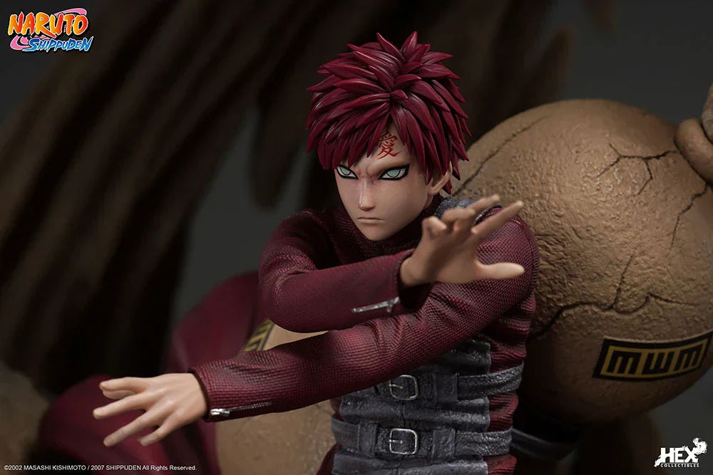 HEX Collectibles present the Gaara Ultimate Diorama Statue in 1:8 scale from Naruto Shippuden. The statue measures 24.4" tall, inspired by the battle scene between Gaara and Deidara. As the Fifth Kazekage, Gaara fights with Deidara while protecting the village from being involved.