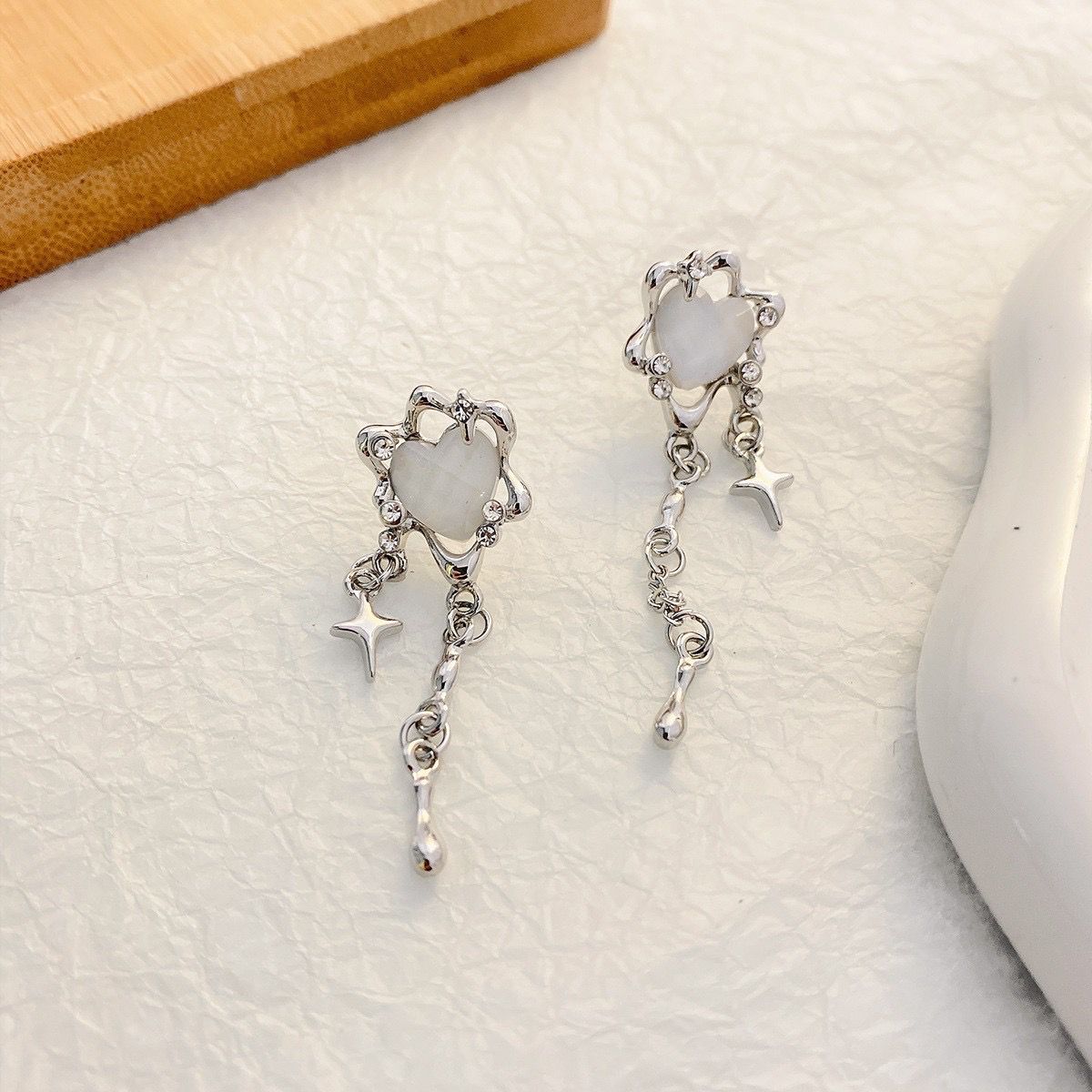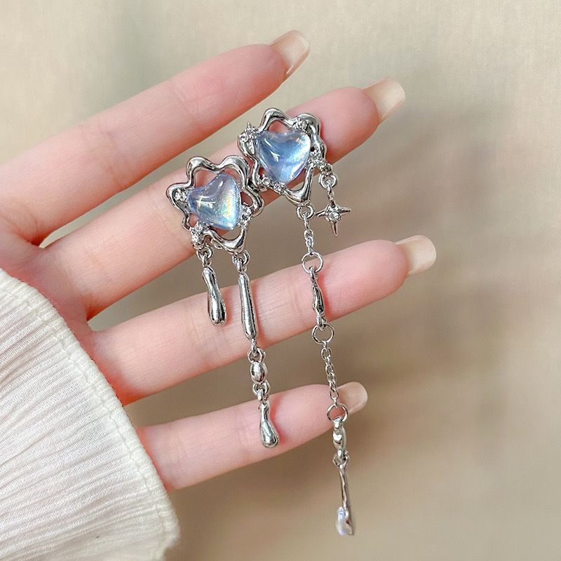 Korean earrings , soft girl aesthetic, campus collection, heart earrings, K-pop earrings, star earrings, blue earrings, heart earrings.
