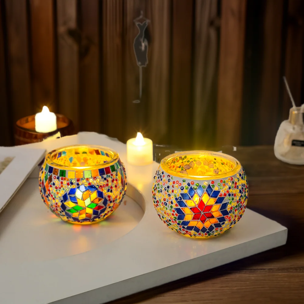 Mosaic Glass Tea Light Candle Holder – Set of 2