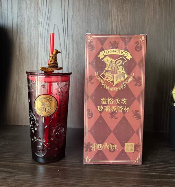 Magical Design: The Harry Potter Naixue x Hogwarts Magic Hat Topper 17oz Glass Straw Cup Tumbler features an enchanting design, with a magical Hogwarts-inspired topper shaped like the iconic Sorting Hat. This unique, whimsical design brings the magic of the wizarding world to your everyday drinkware.