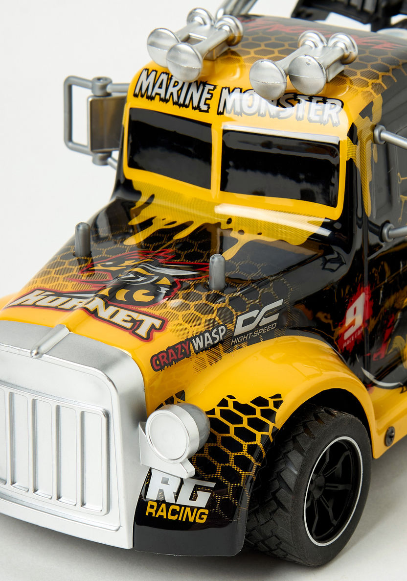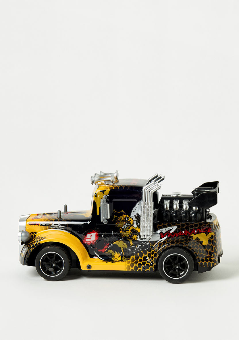 The Hornet Remote Control Spray Light Vehicle is a cutting-edge and engaging toy made for children aged 6-10 years. This thrilling RC car has a built-in spray function that uses the included spray bottle to produce a mist effect, adding a new level of excitement to playtime. It also boasts vibrant LED lights, enhancing the visual element as it speeds around. The vehicle is powered by a rechargeable battery and comes with a USB cable for easy charging. With its durable design and captivating features, this spray light vehicle offers endless entertainment and imaginative play, making it an ideal present for young car fans.