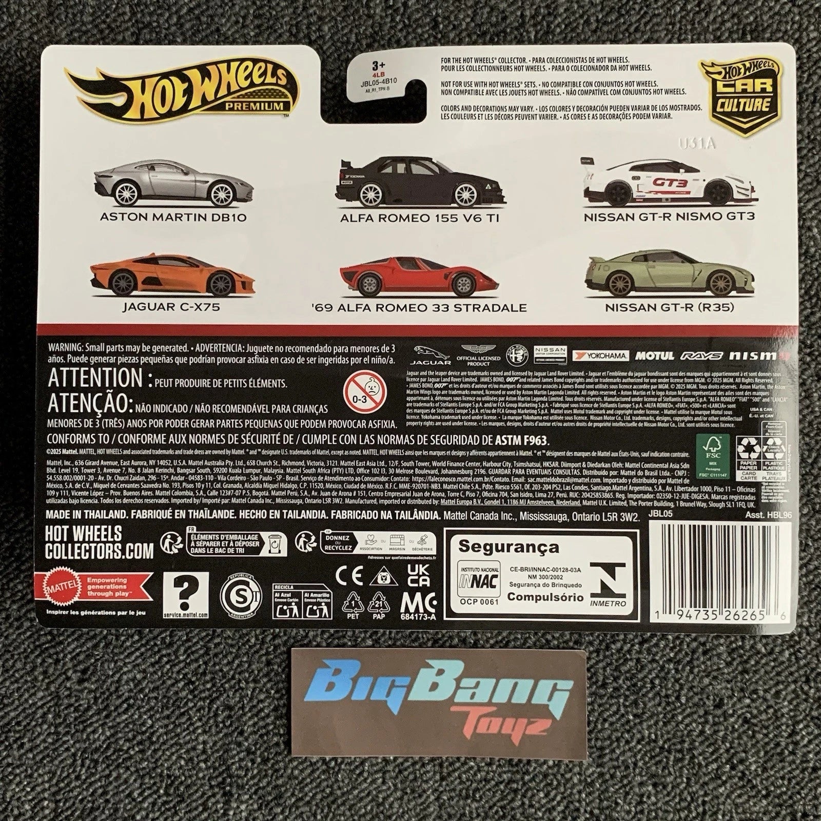 The Hot Wheels 2025 Car Culture Twin Packs feature premium 1:64 scale die-cast models with detailed designs and Real Riders wheels. Highlights include the Nissan GT-R NISMO & GT-R R35, Alfa Romeo 155 V6 TI & 33 Stradale, and Aston Martin DB10 & Jaguar C-X75—perfect for collectors and automotive enthusiasts alike.
