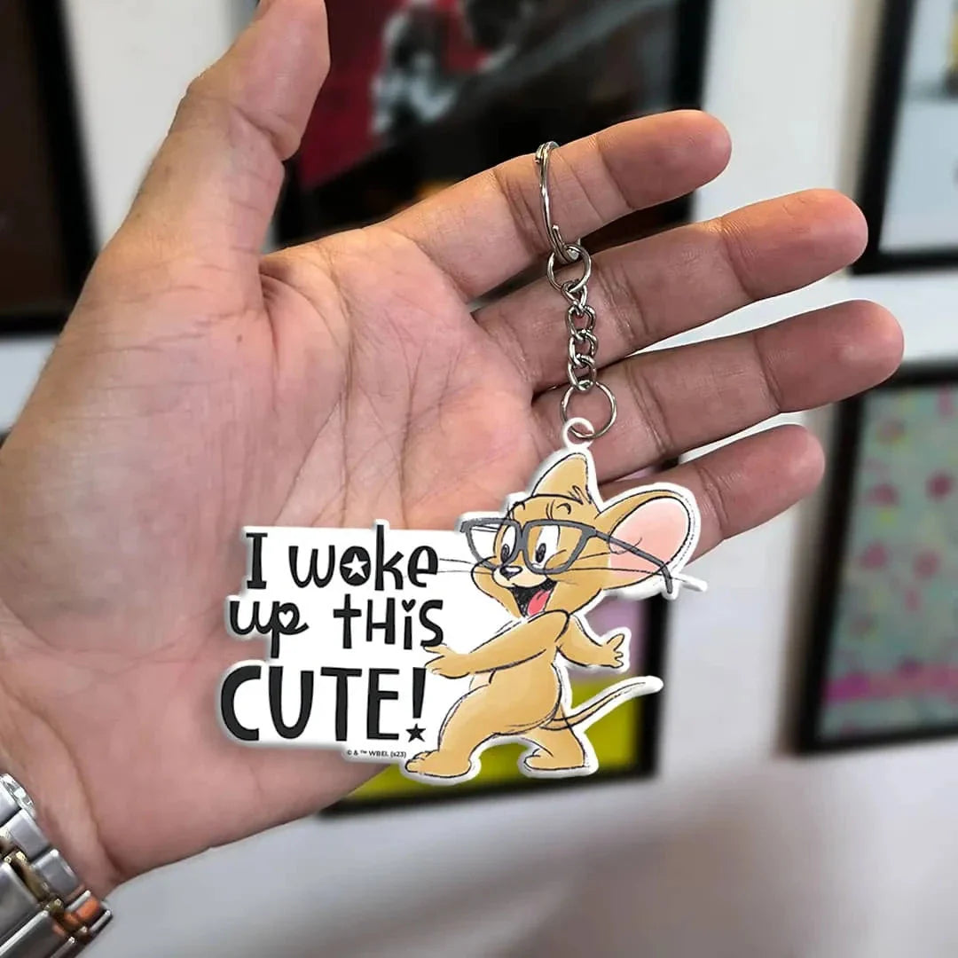 This Jerry - I Woke up This Cute Acrylic Keychain is the perfect accessory for any animal lover. Made with durable acrylic, this keychain features an adorable image of a walking Jerry, the beloved cartoon mouse. Showcase your love for Jerry and add a touch of cuteness to your keys with this keychain.