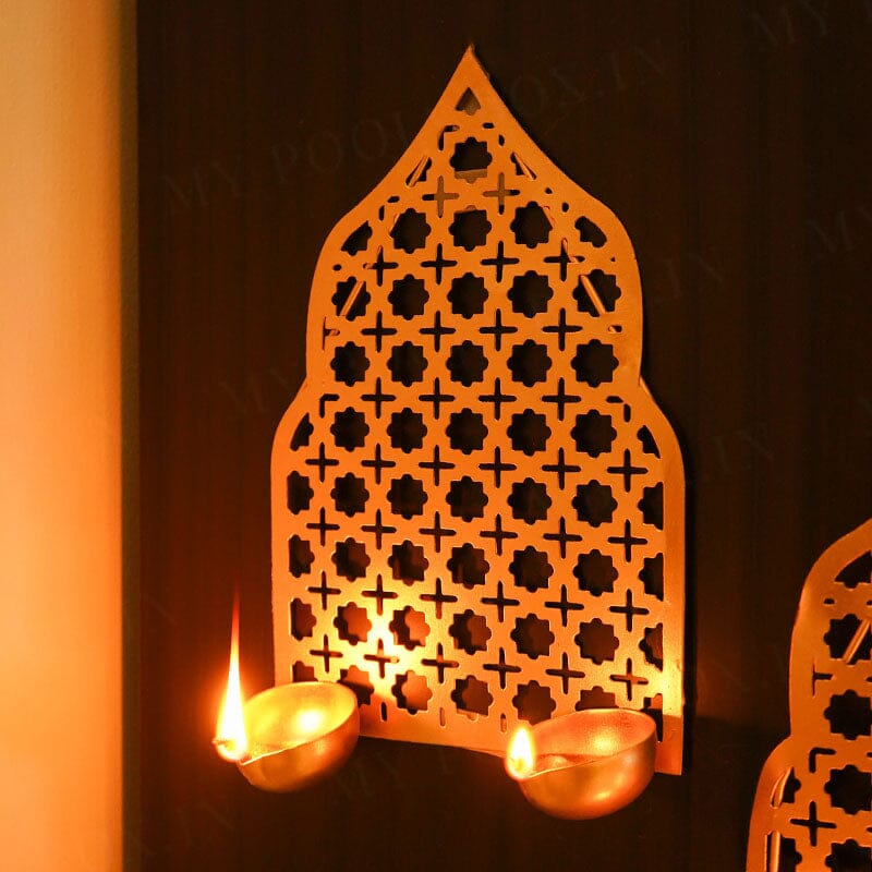 This Jharokha Wall Hanging T-light Holder is a beautiful and functional addition to any home decor. Crafted with intricate detailing, it adds an elegant touch to your space. Made from high quality materials, it is durable and long-lasting. Perfect for adding a warm and cozy ambiance to any room, this holder is a must-have for those who appreciate traditional design and expert craftsmanship.