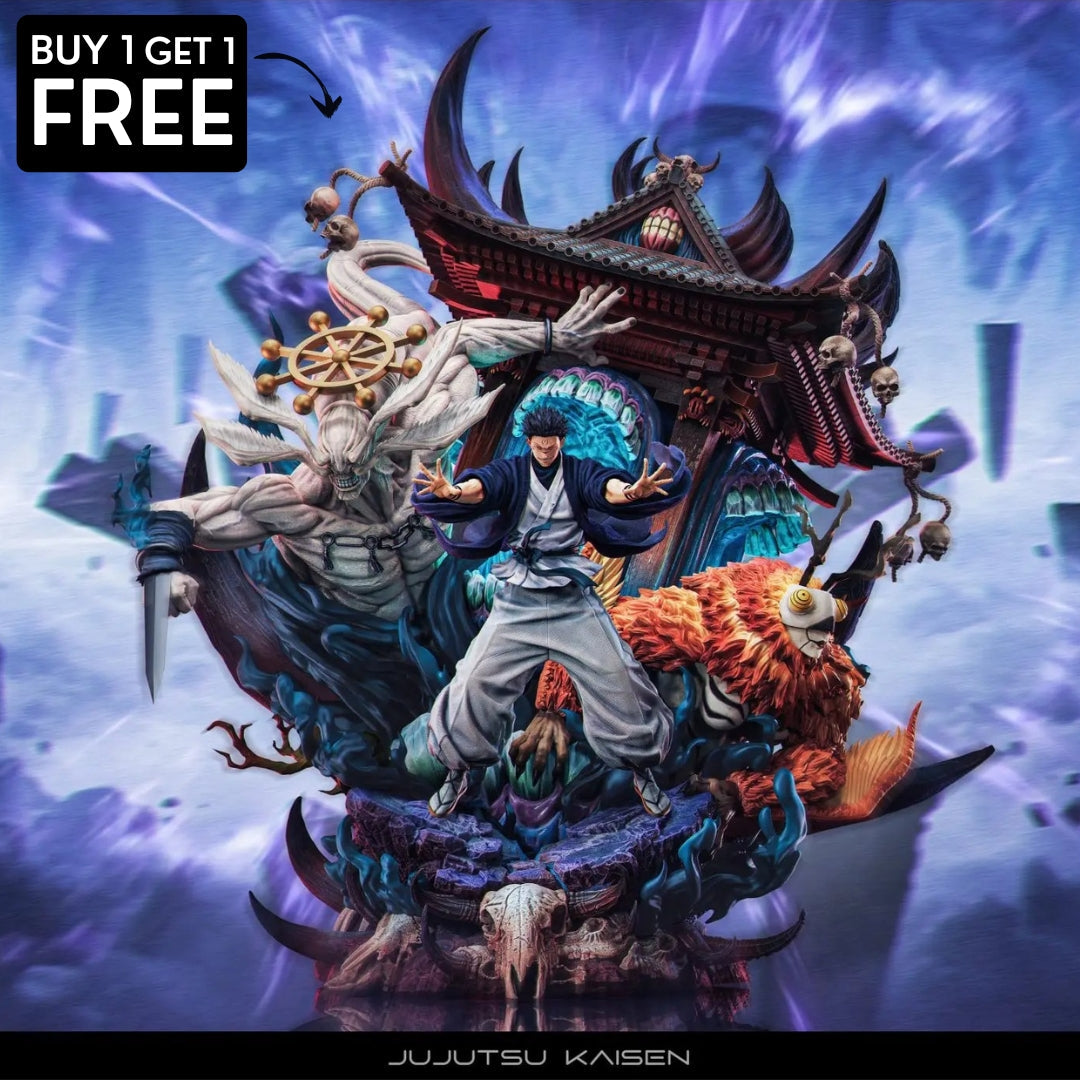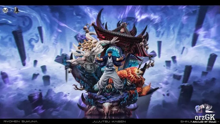 💥 Dynamic Design: Sukuna’s fearsome stance and flowing robes are paired with intricate sculpting of the demon realm backdrop.