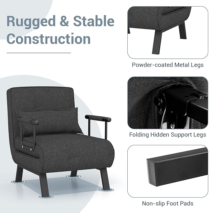 KOMFOTT Convertible Sleeper Chair Bed, 4-in-1 Folding Sofa Bed with 6-Position Adjustable Backrest, Upholstered Chaise Lounge with Removable Pillow, Leisure Recliner Lounge Couch