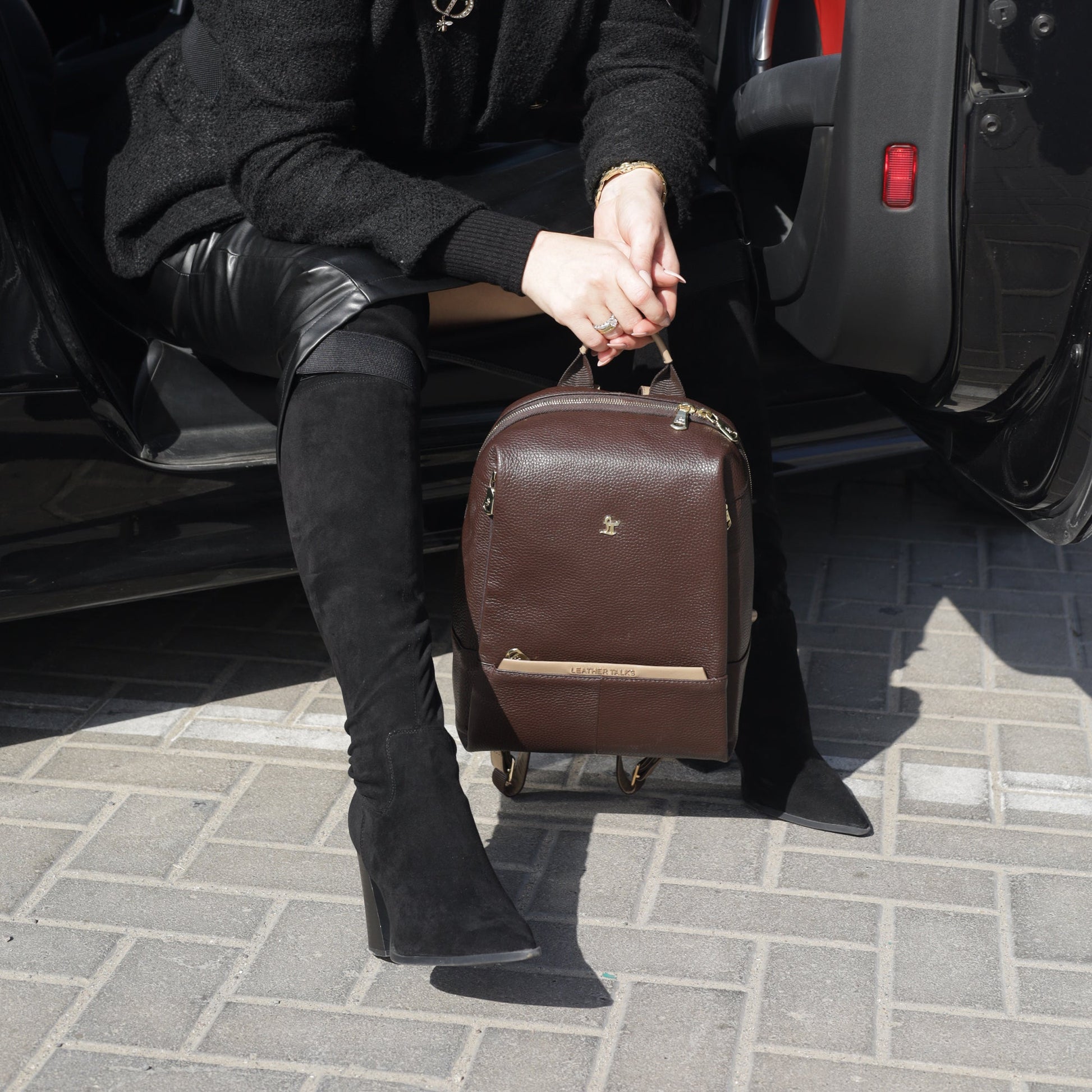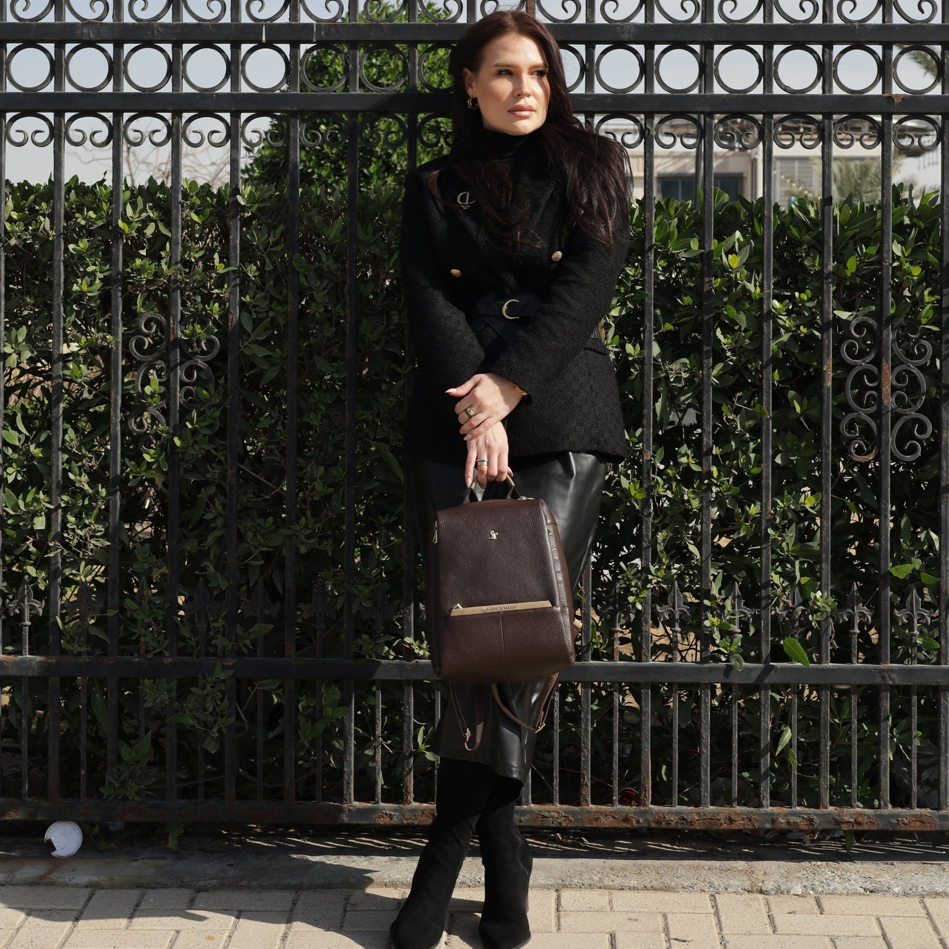 Premium Ladies Backpack | Genuine Leather Backpack for Women | Travel Backpack | Colour - Brown & Black