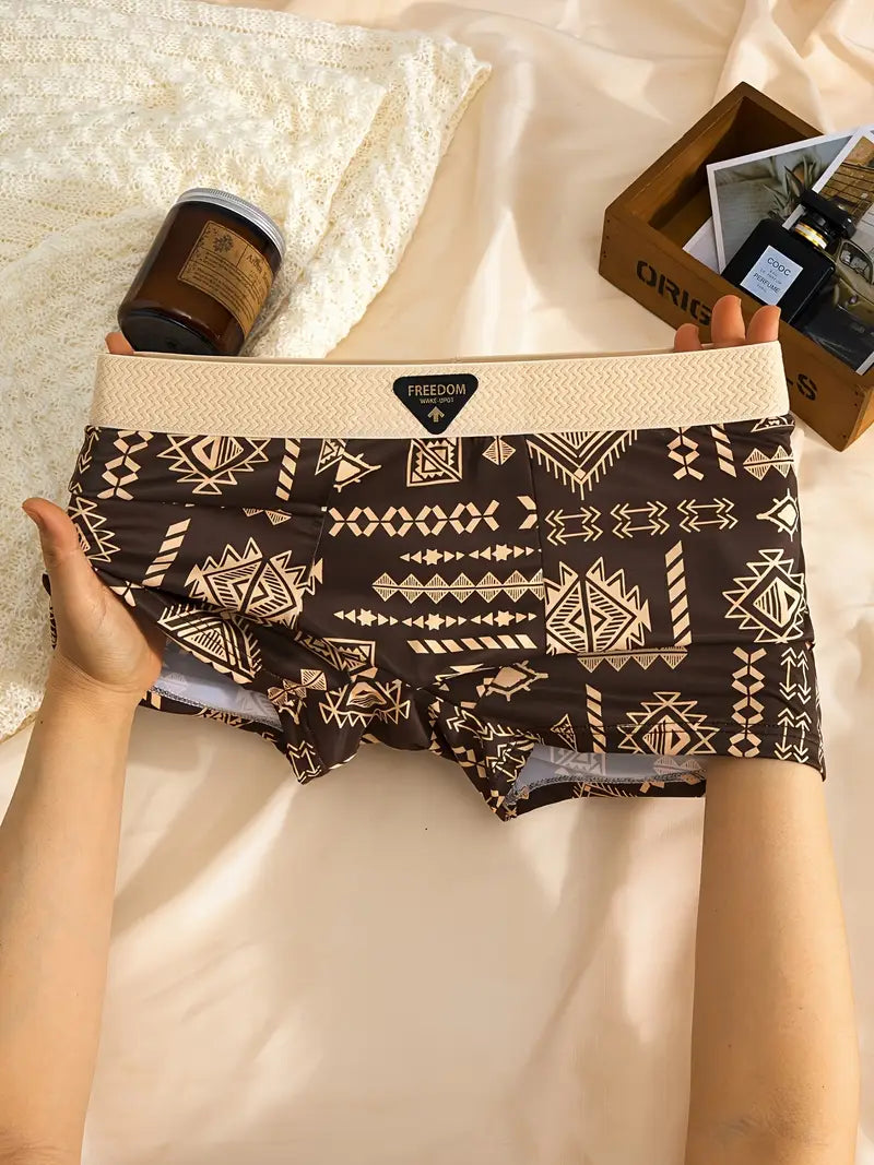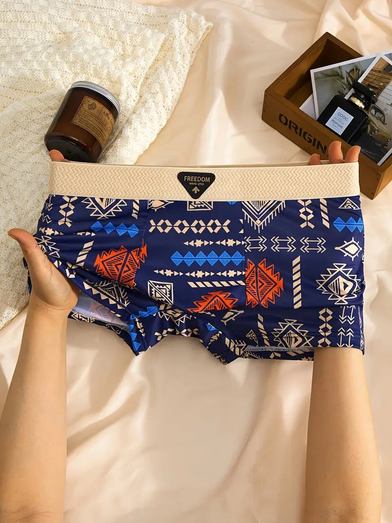 Men’s Ice-Silky Boxer Briefs – 5-Pack Mixed Colors with Geometric Prints