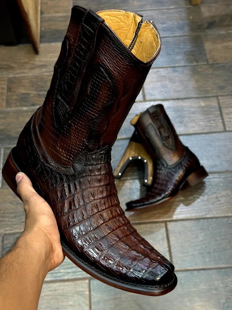 Men's handmade crocodile leather boots offer unmatched luxury, durability, and timeless style. Crafted from genuine crocodile skin, each pair features unique scale patterns, hand-stitched construction, and premium finishes. Key features include exotic leather, handcrafted detailing, Goodyear welt or Blake stitching, and a choice of dress or western styles.